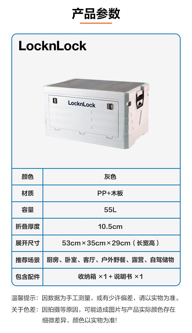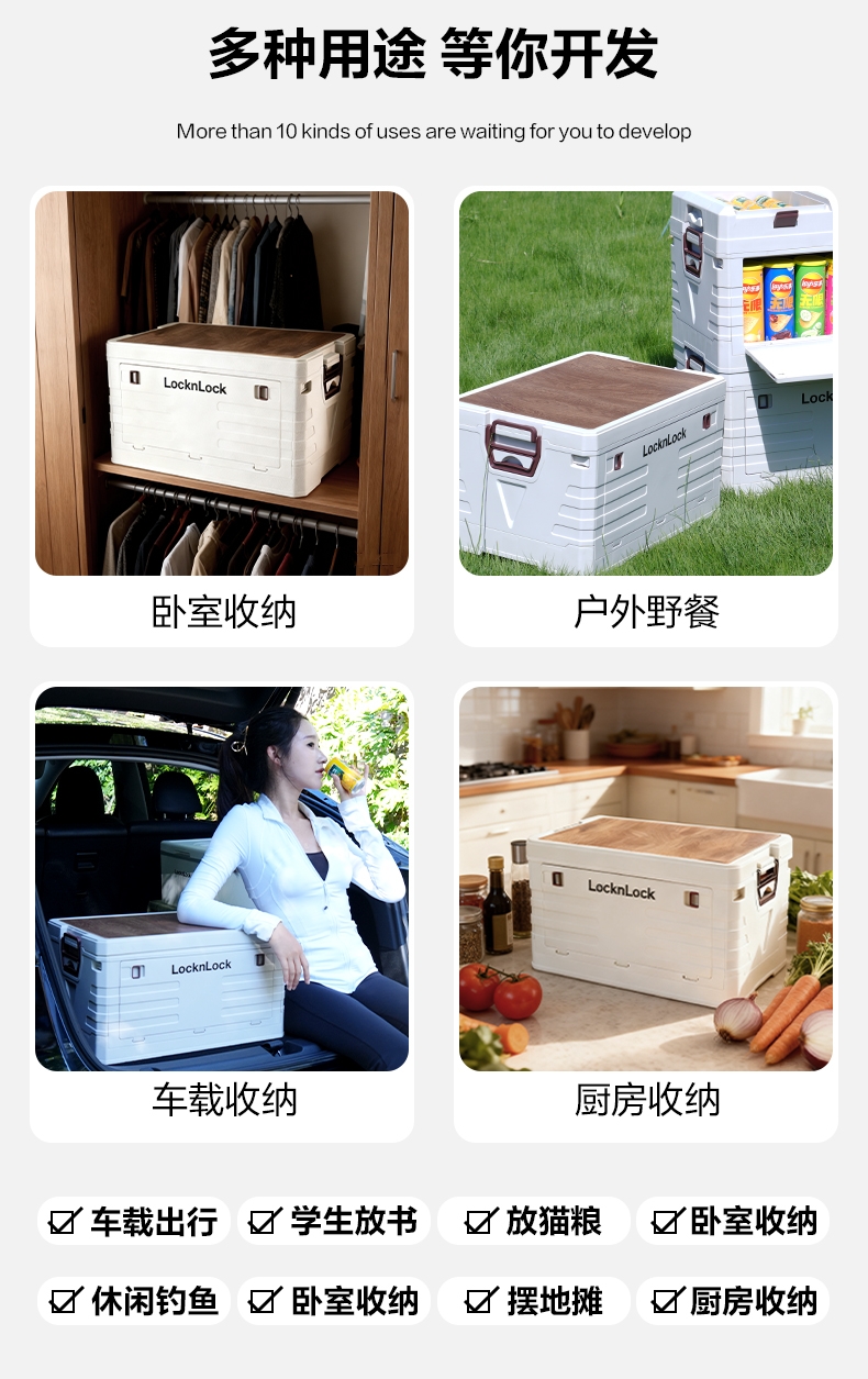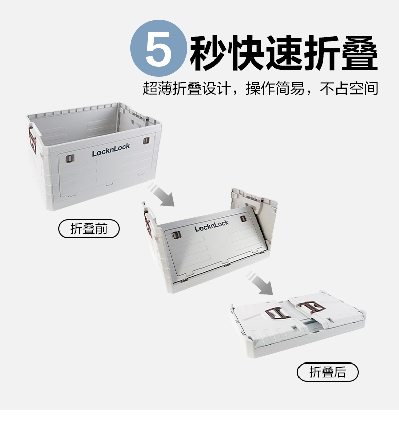 55L巨能装,开启收纳箱大容量时代;5秒快速折叠,操作简易;侧边设有提手,锁扣使用更稳妥