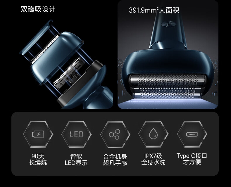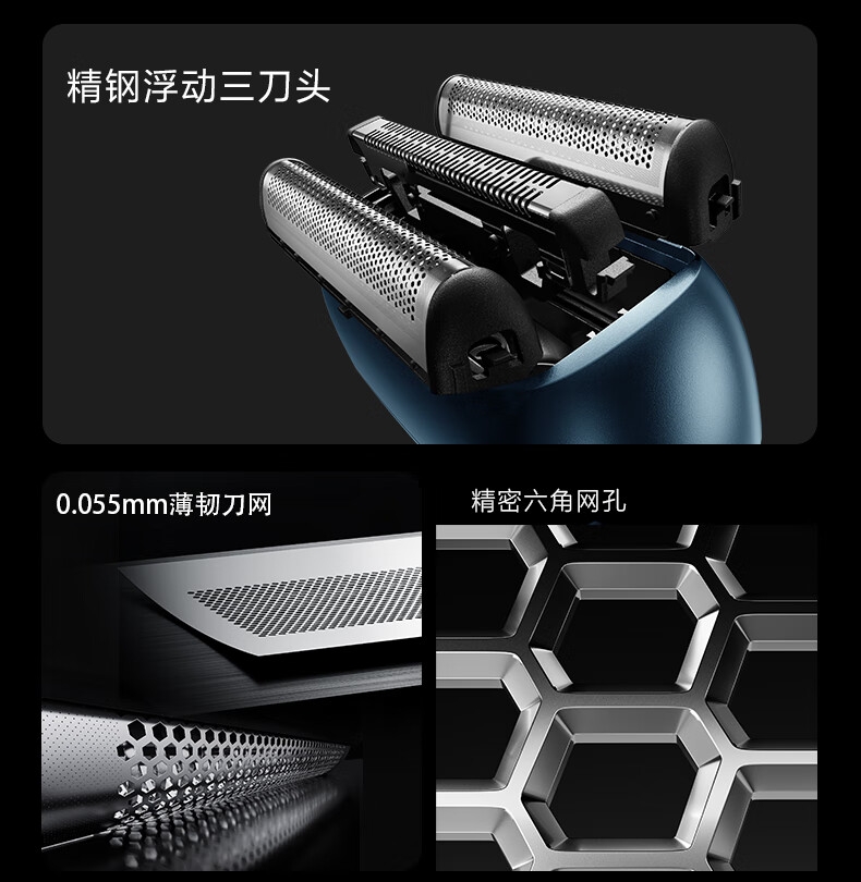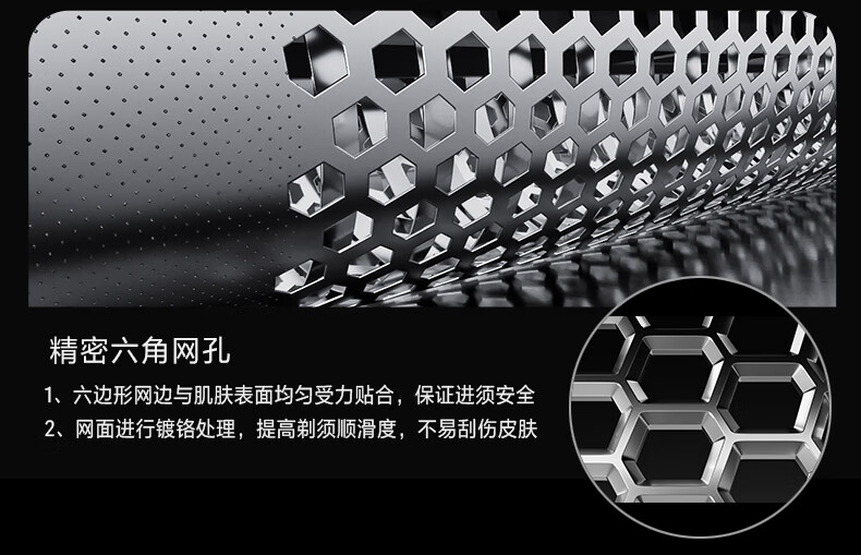 0.055mm薄韧刀网;精密六角网孔;双磁吸设计