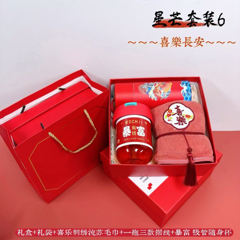 星芒套装6配置:喜乐刺绣流苏毛巾 一拖三数据线 暴富吸管随身杯