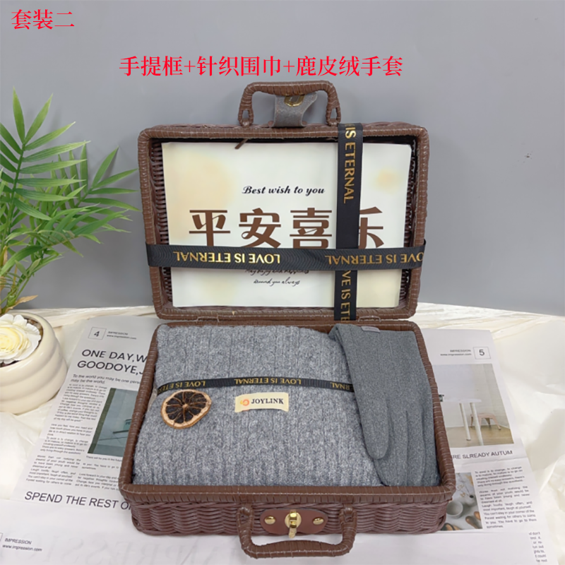 套装2:手提框30*20*13CM 针织围巾160*23CM 鹿皮绒手套