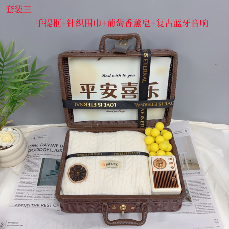 套装3:手提框30*20*13CM 针织围巾160*23CM 葡萄香薰皂 复古蓝牙音响