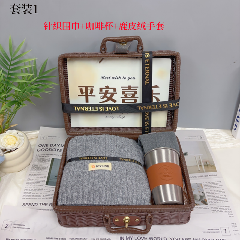 套装1:手提框30*20*13CM 针织围巾160*23CM 304咖啡杯500ml 鹿皮绒手套