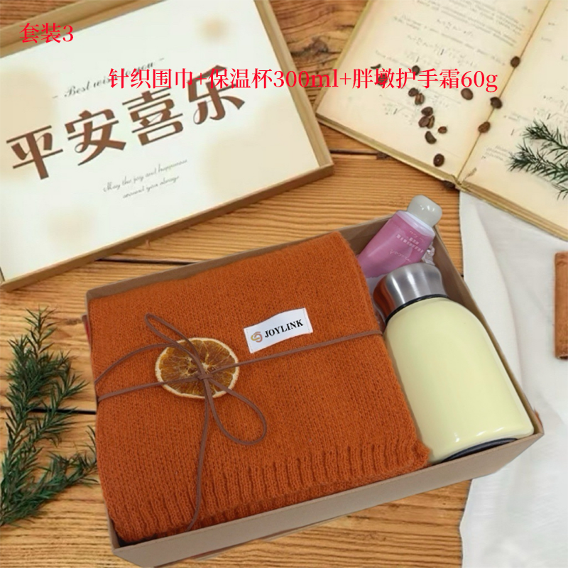 套装3:平安喜乐礼盒28*20*9 针织围巾160-23CM 316保温杯300ml 胖墩护手霜60g
