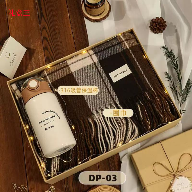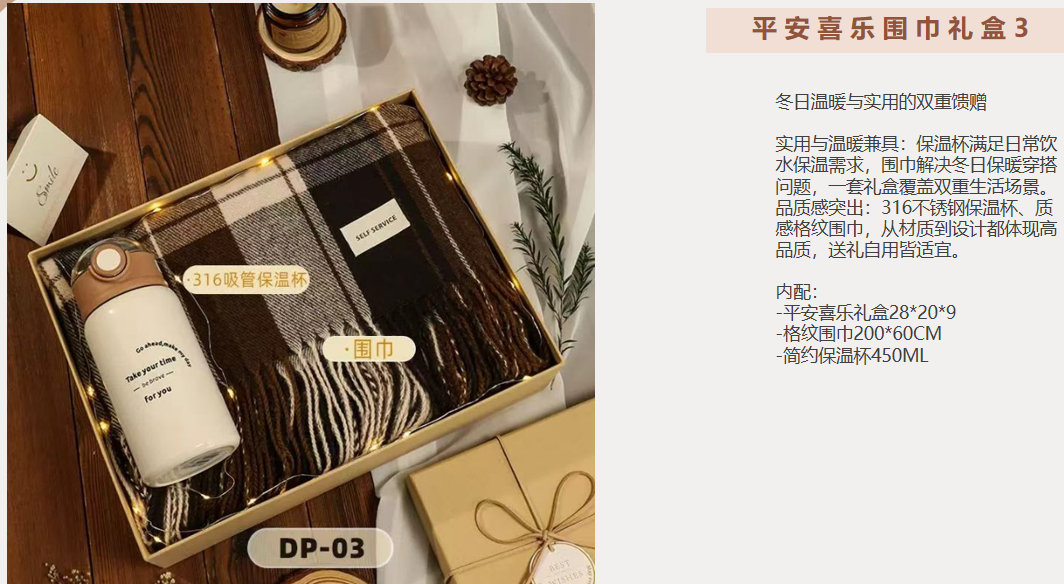 礼盒3配置:平安喜乐礼盒28*20*9 -格纹围巾200*60CM -简约保温杯450ML