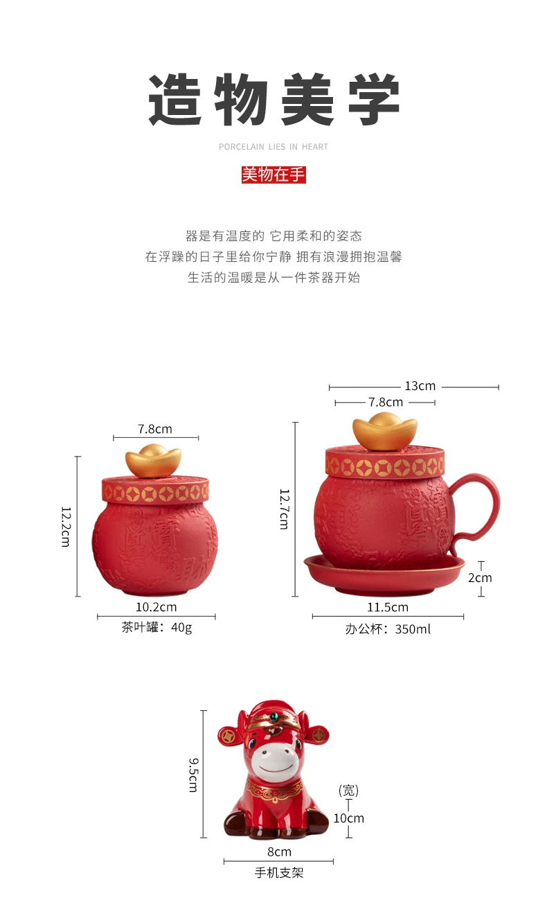 喜庆吉祥,寓意美好;天然矿物釉,高温烧制无铅镉 ;搭配礼盒包装,自用赠礼两宜