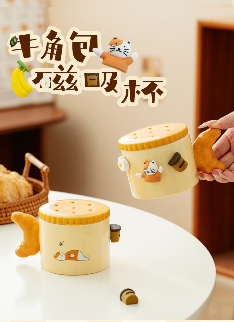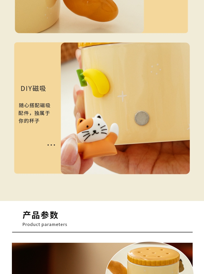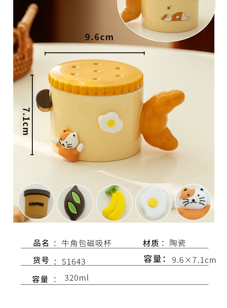 磁吸动物公仔;下午茶咖啡杯;含陶瓷盖