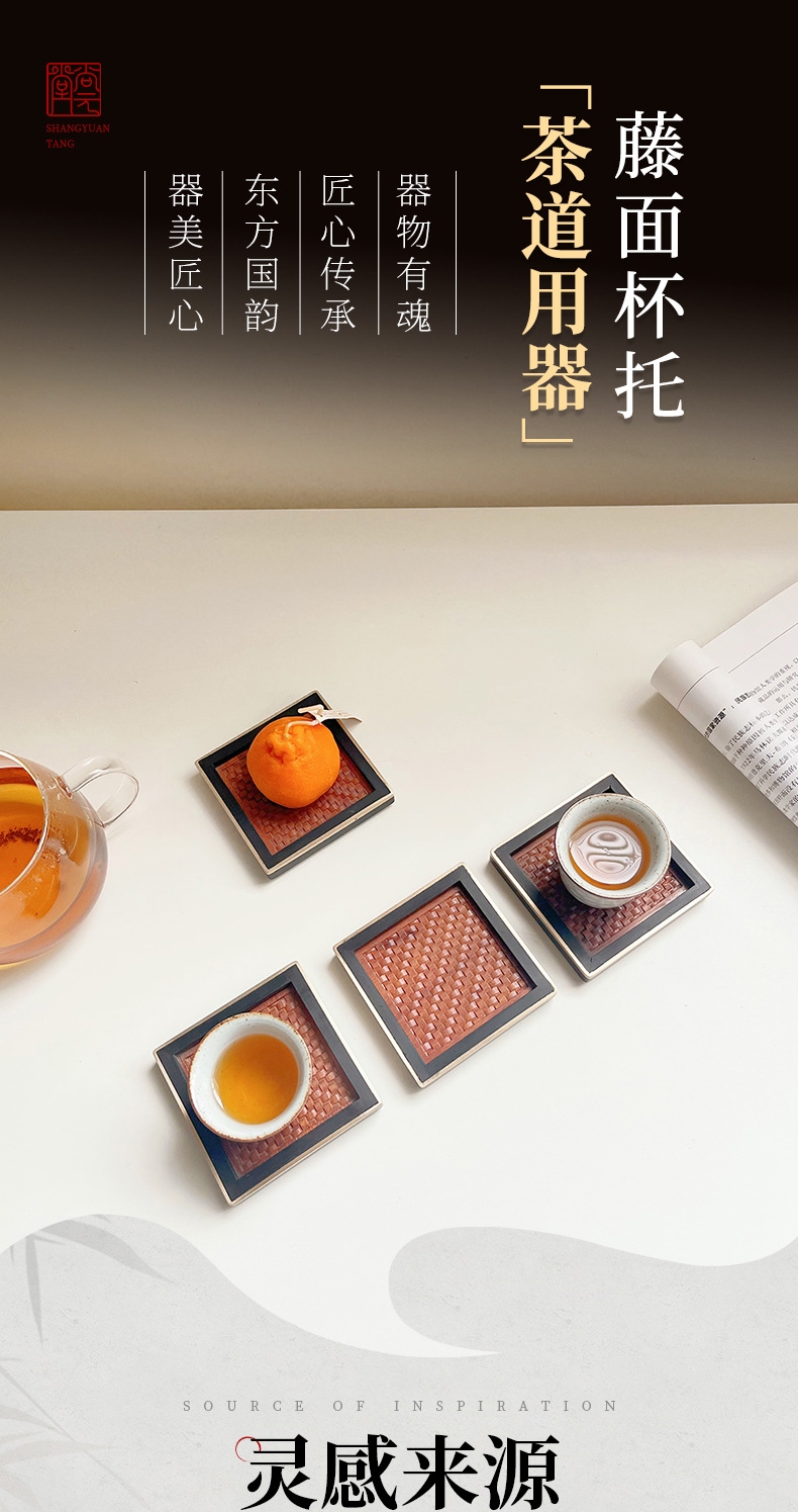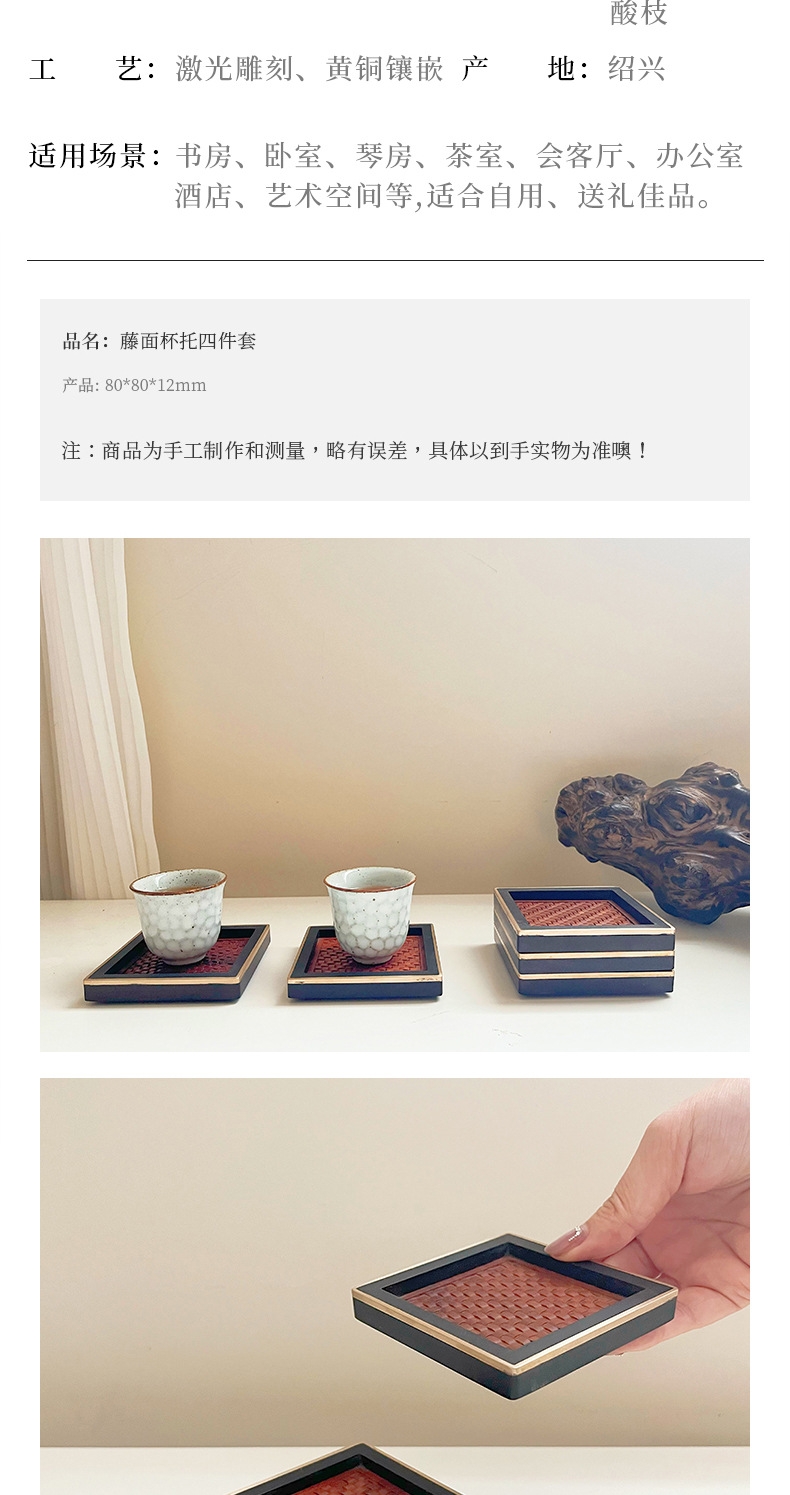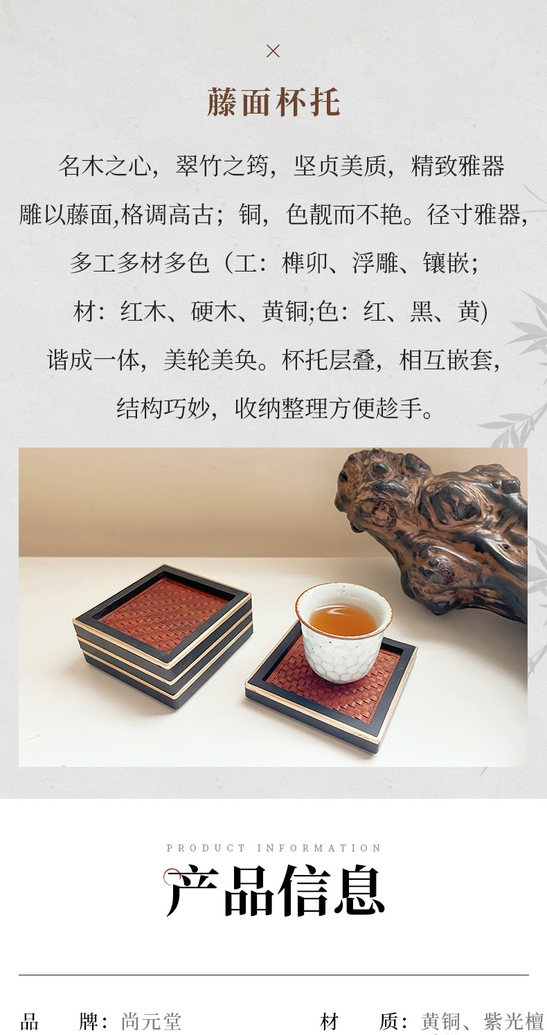 尚元堂 新中式红木藤面杯托茶杯垫四件套CCZ405