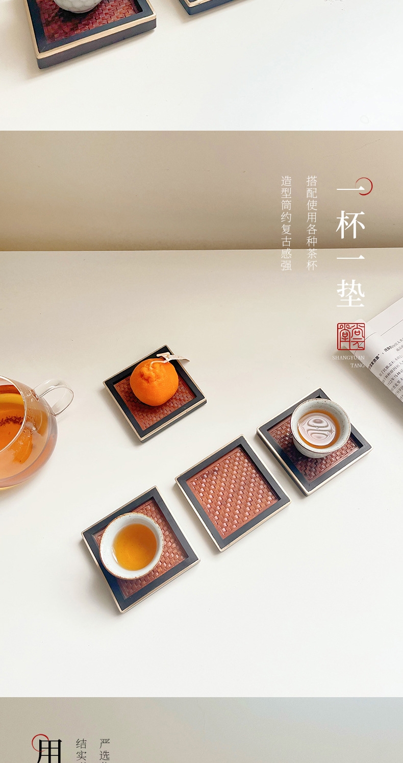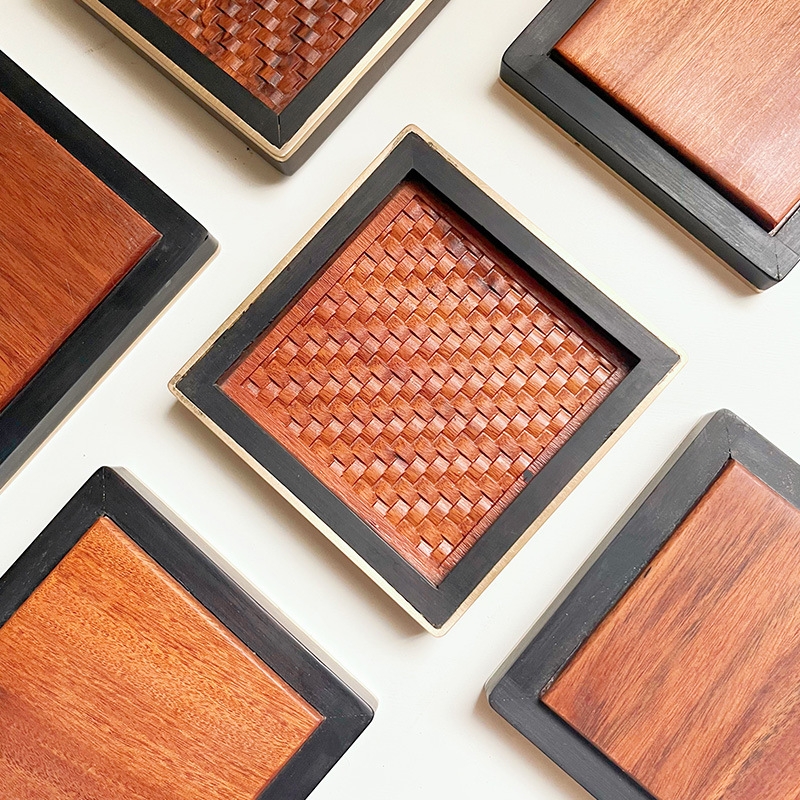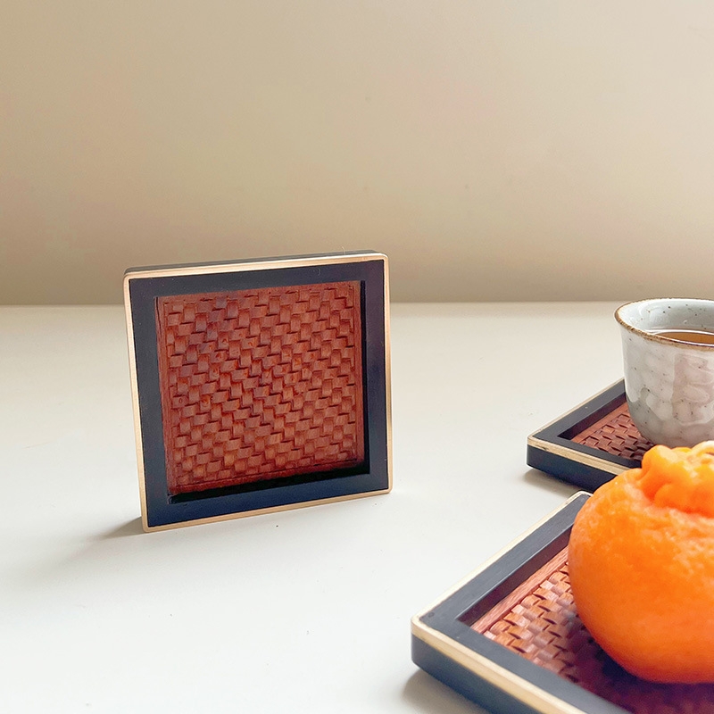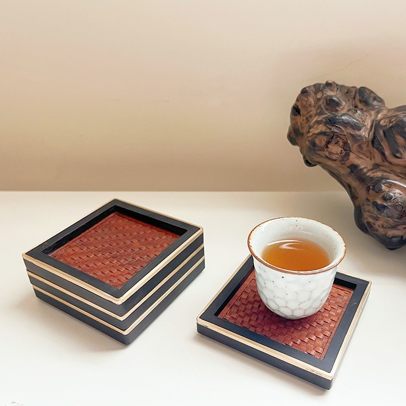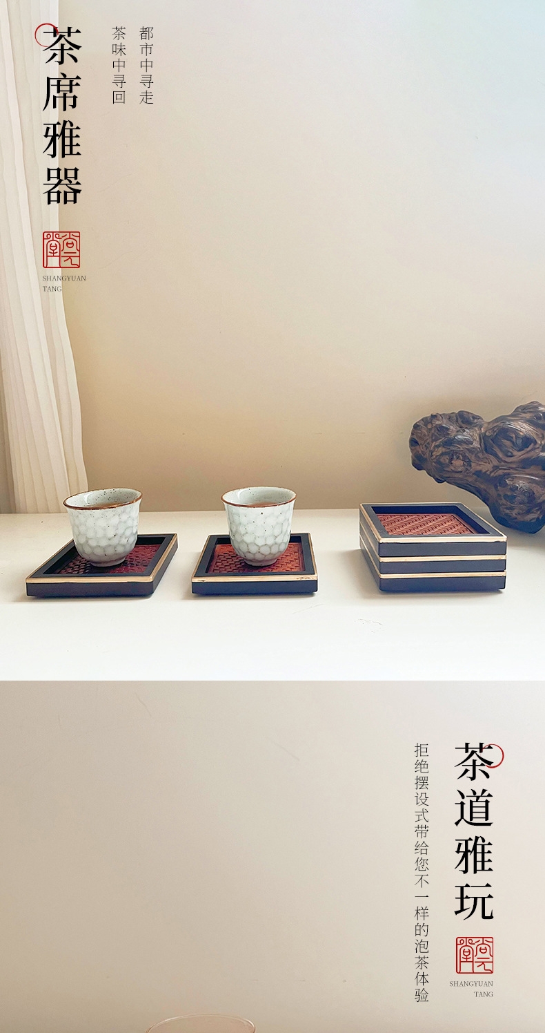 尚元堂 新中式红木藤面杯托茶杯垫四件套CCZ405