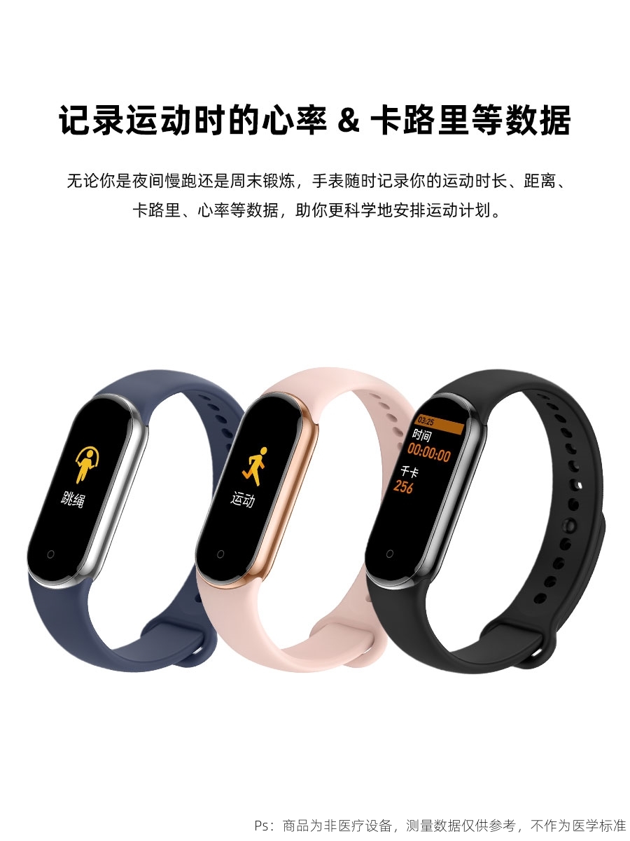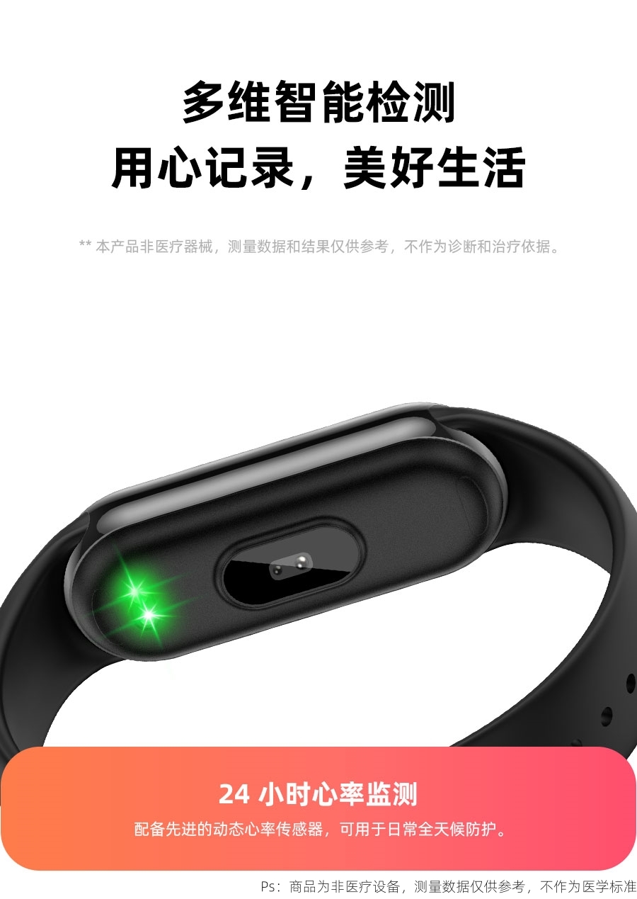 产品材质:上盖-TP,机身-塑胶ABS ,表带-防静电硅胶