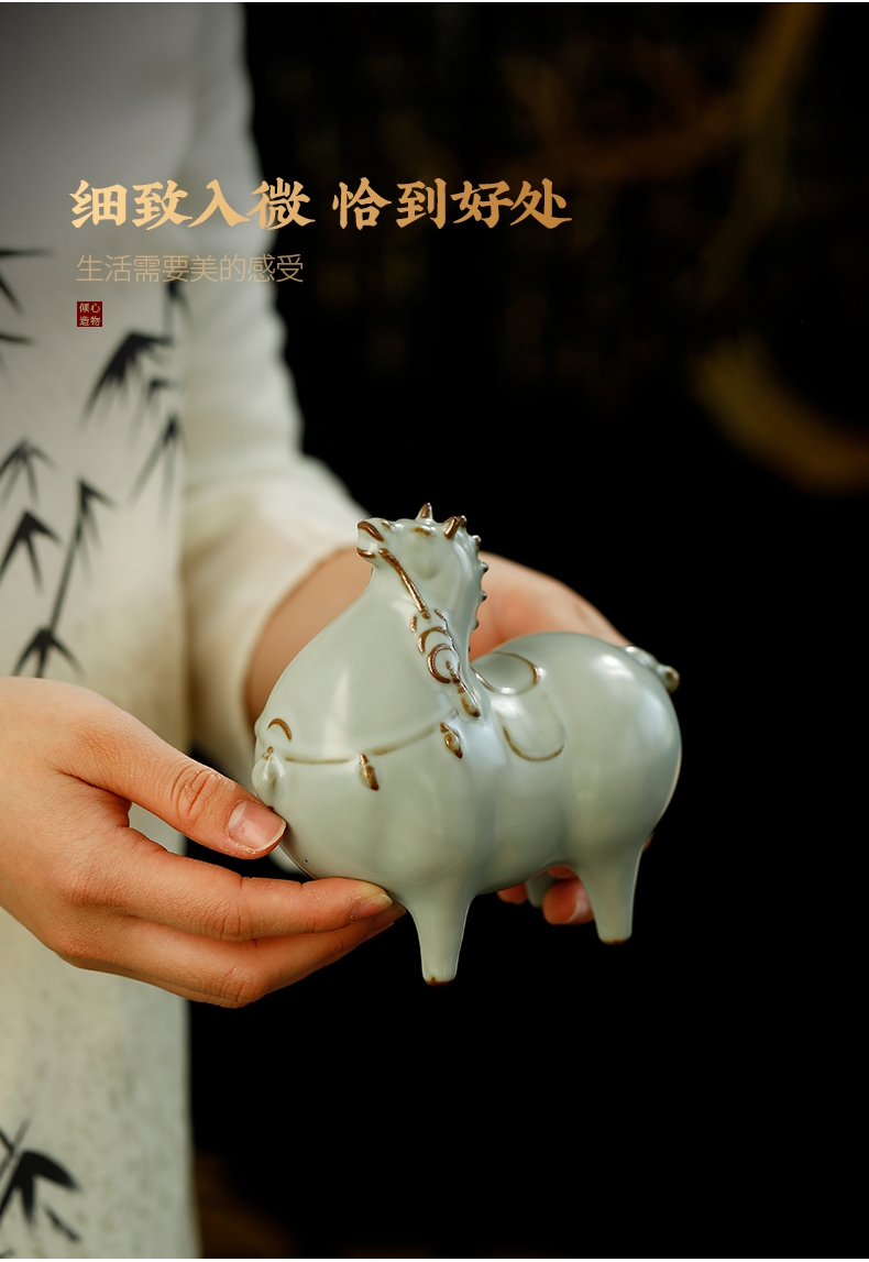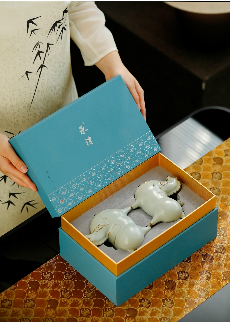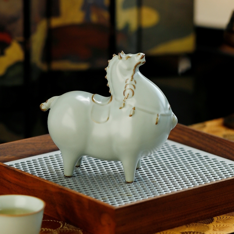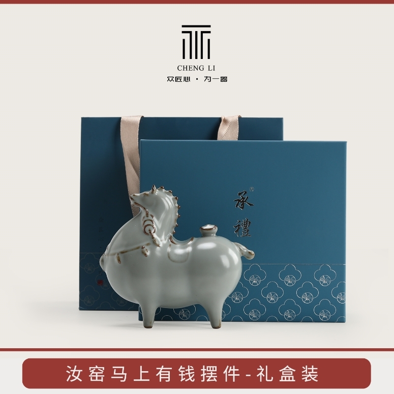 汝窑马上有钱陶瓷装饰摆件家居工艺品礼盒装办公室;商务伴手礼;宋代美学