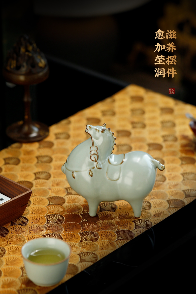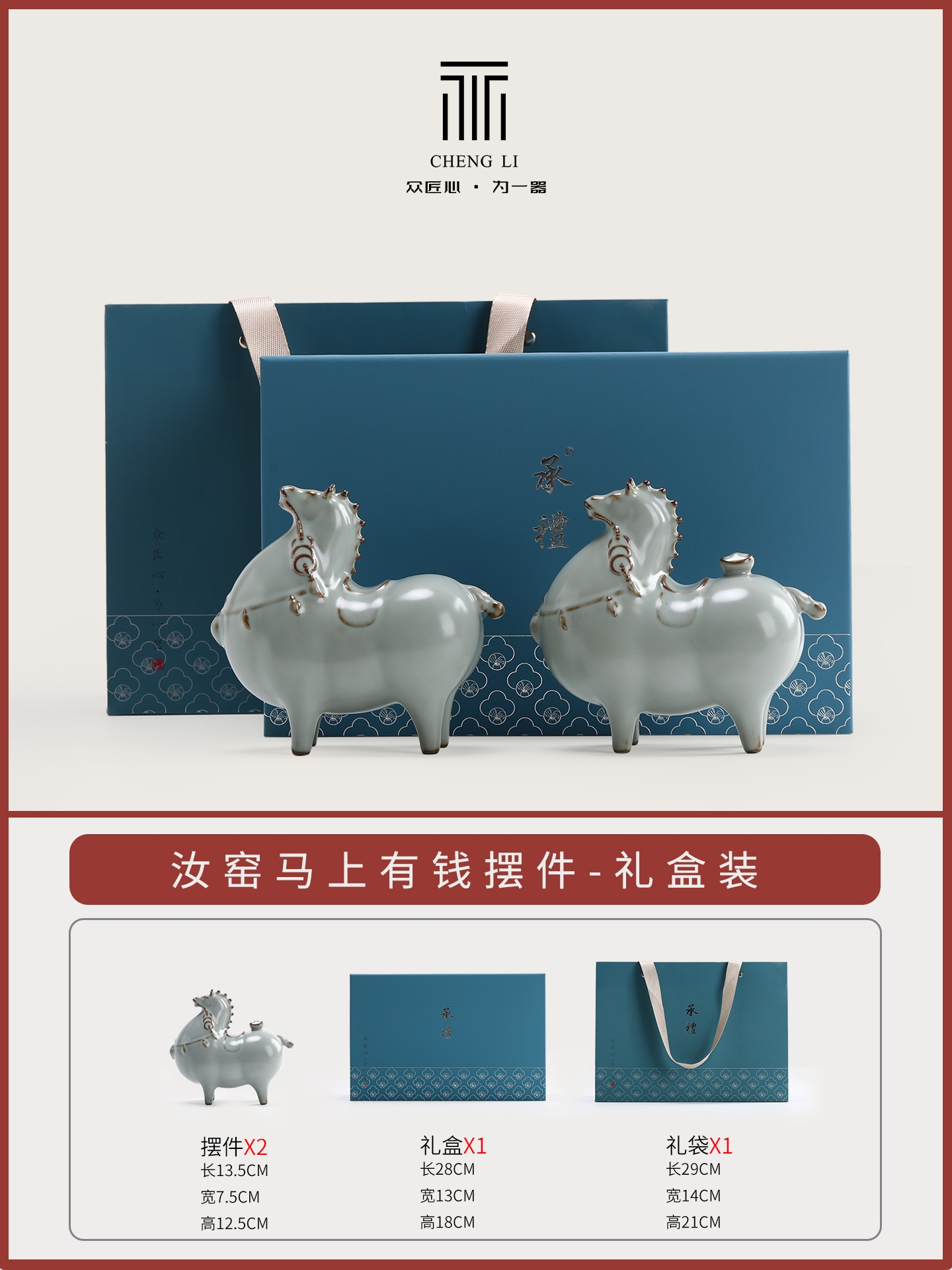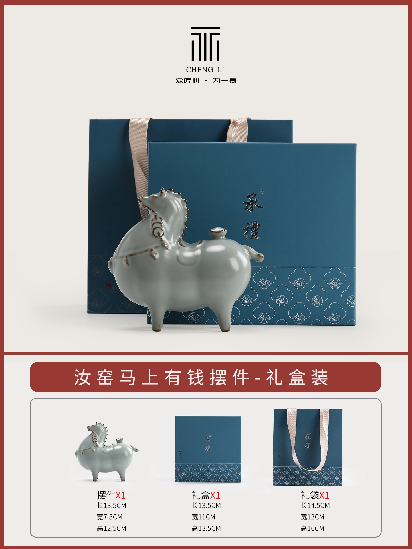 汝窑马上有钱陶瓷装饰摆件家居工艺品礼盒装办公室;商务伴手礼;宋代美学