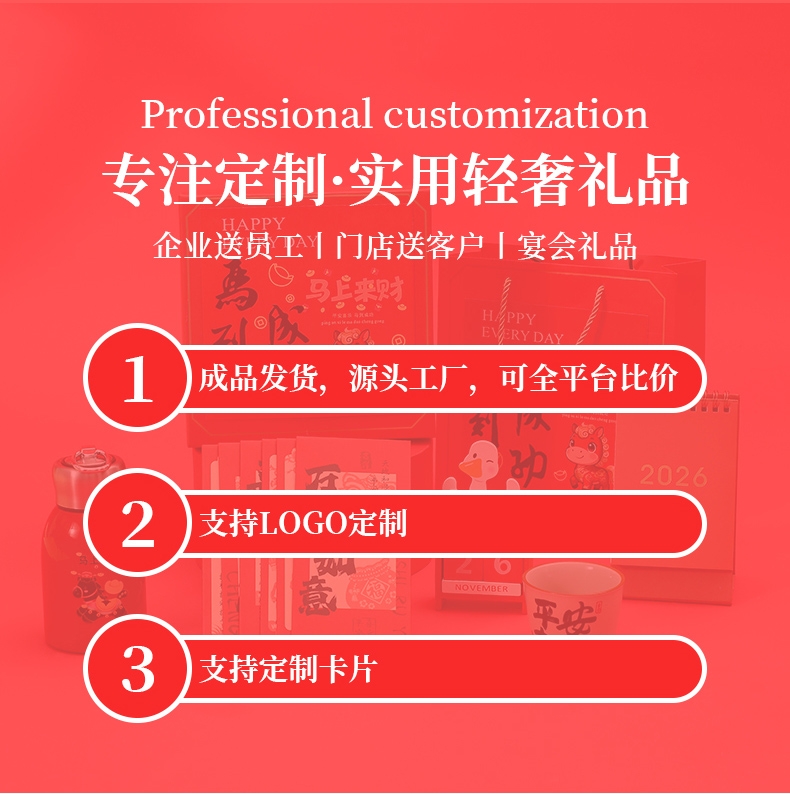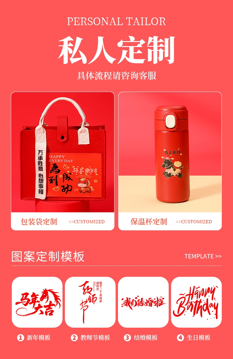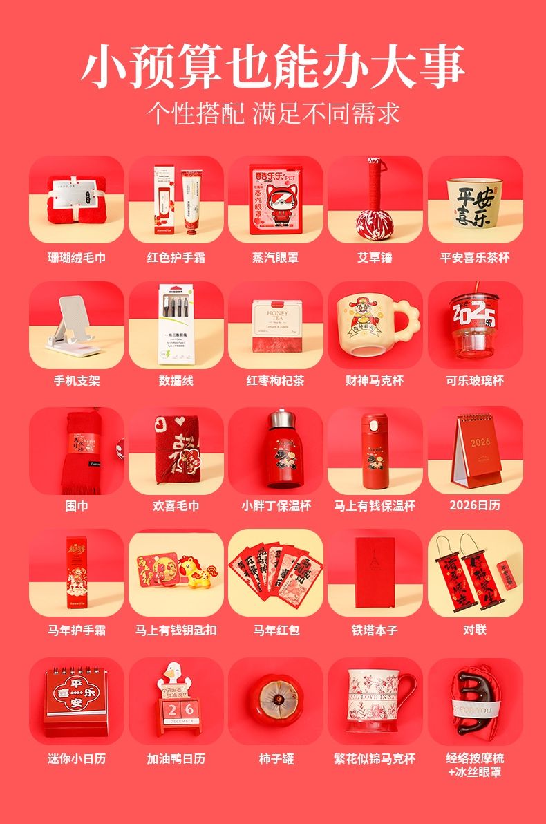 新年礼品多样可选满足个性化需求;新年主题氛围感拉满;支持定制LOGO支持自由搭配