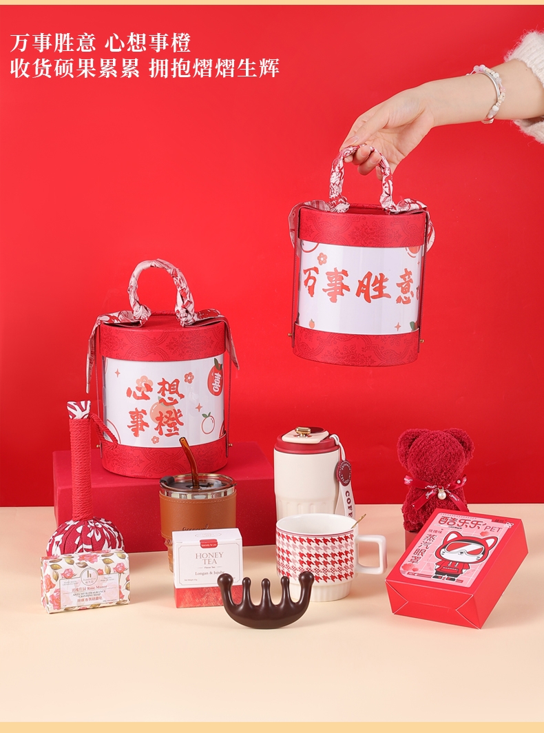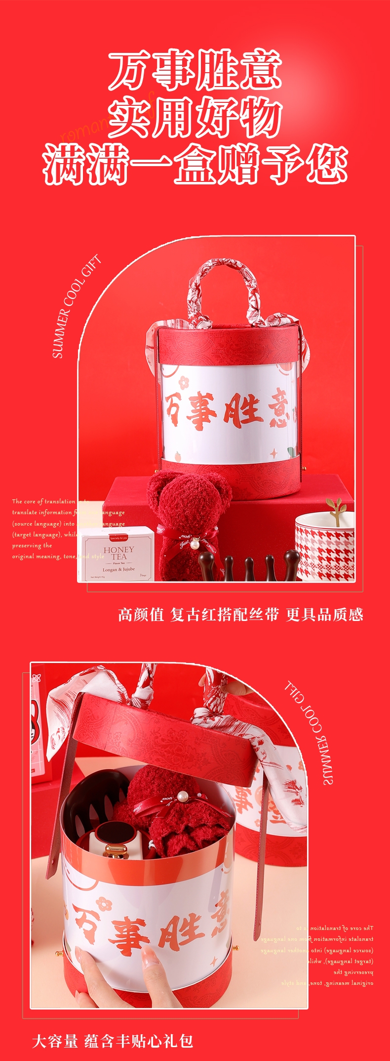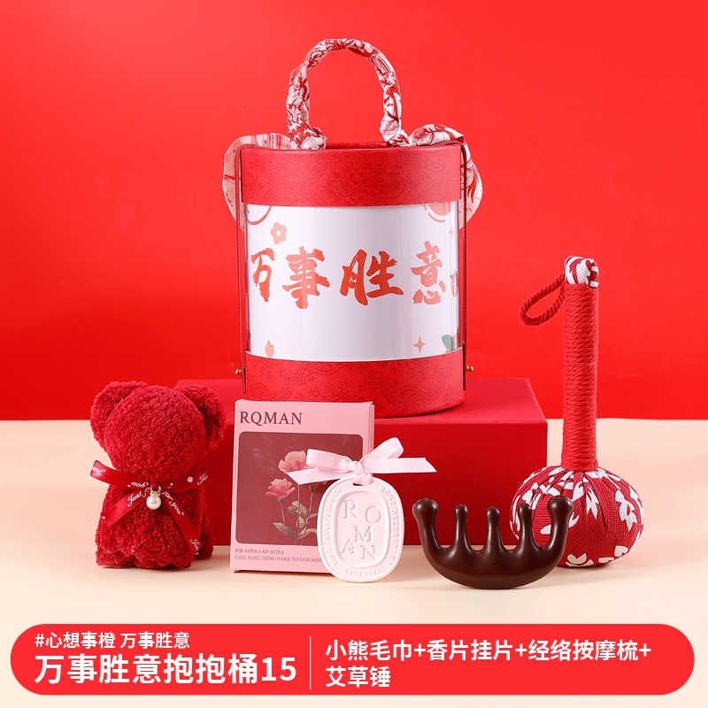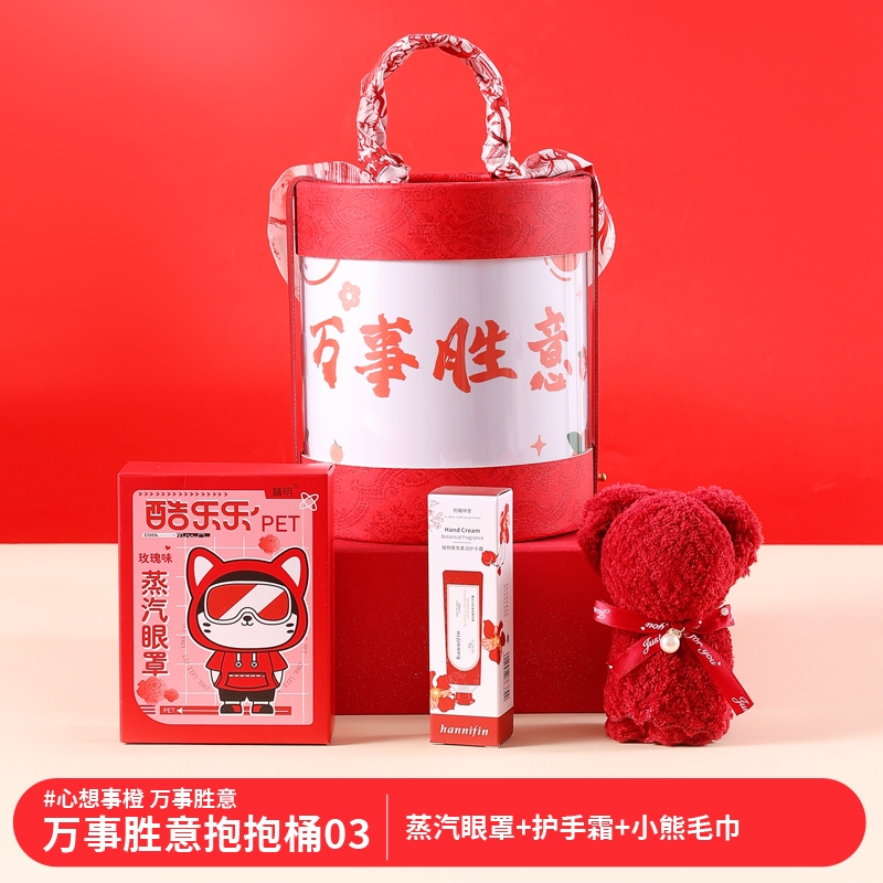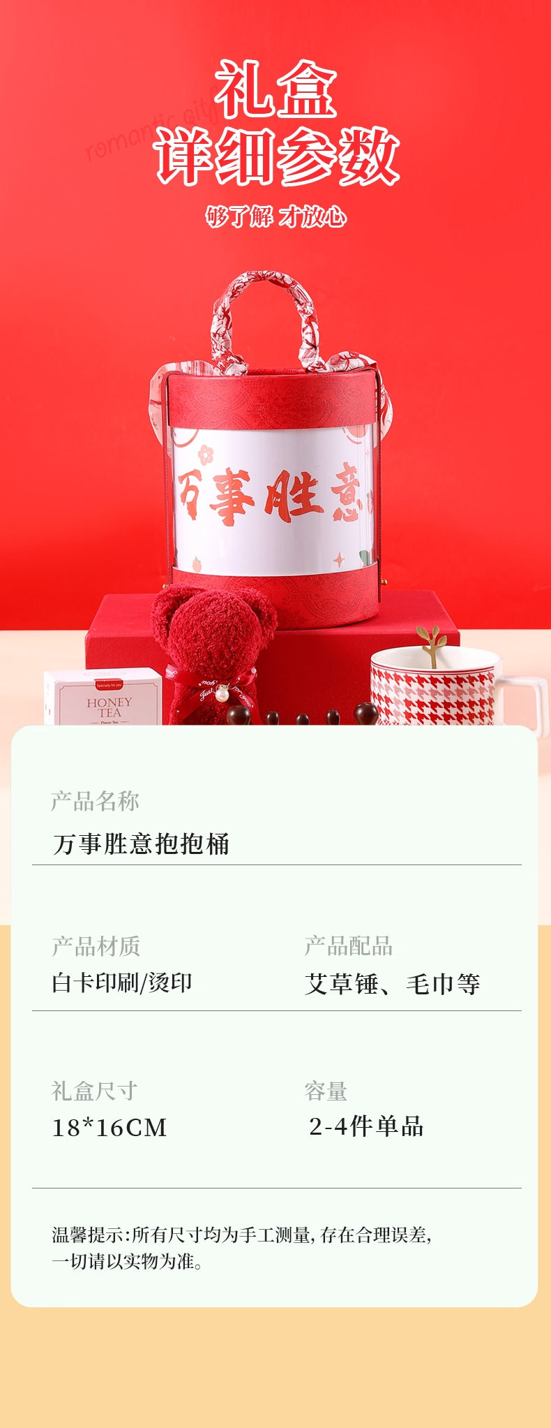 萌呦品 万事胜意红色抱抱桶礼品礼物套装