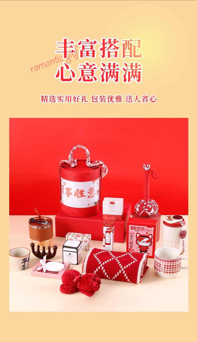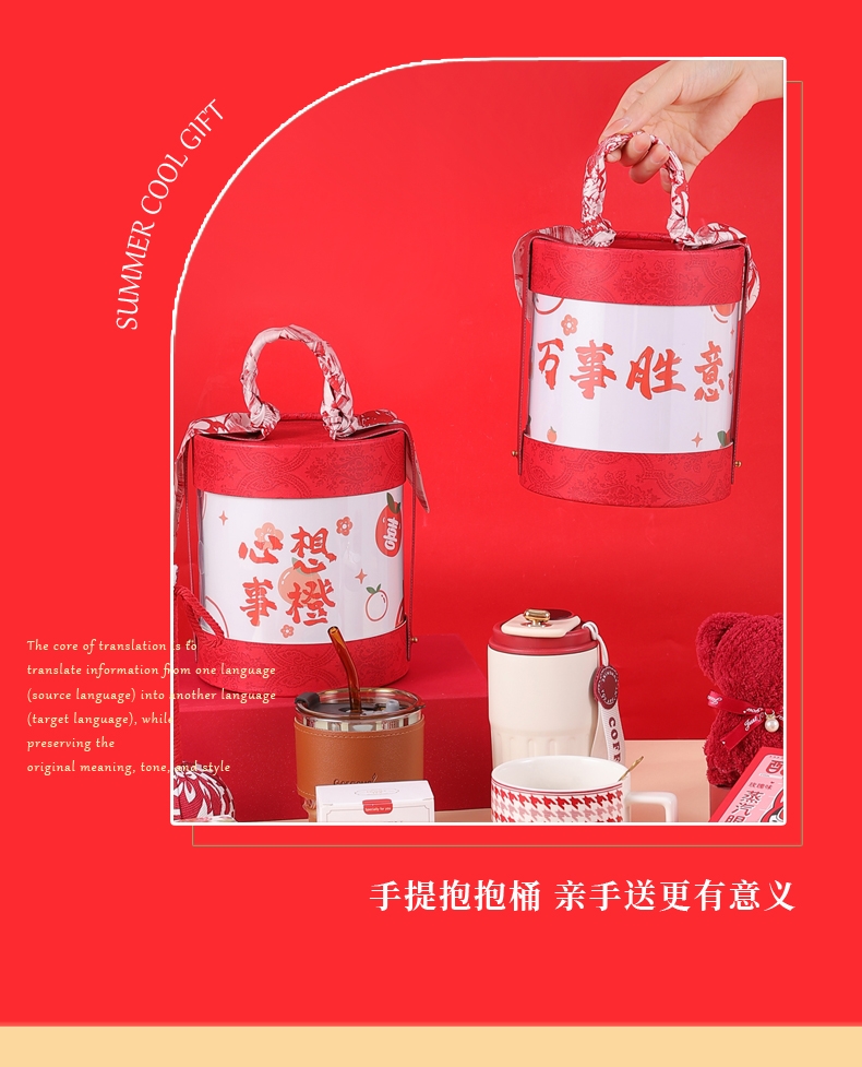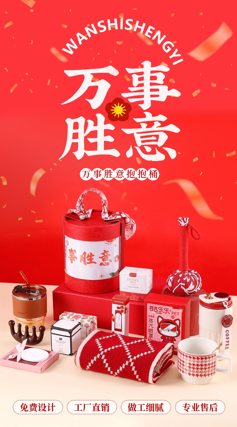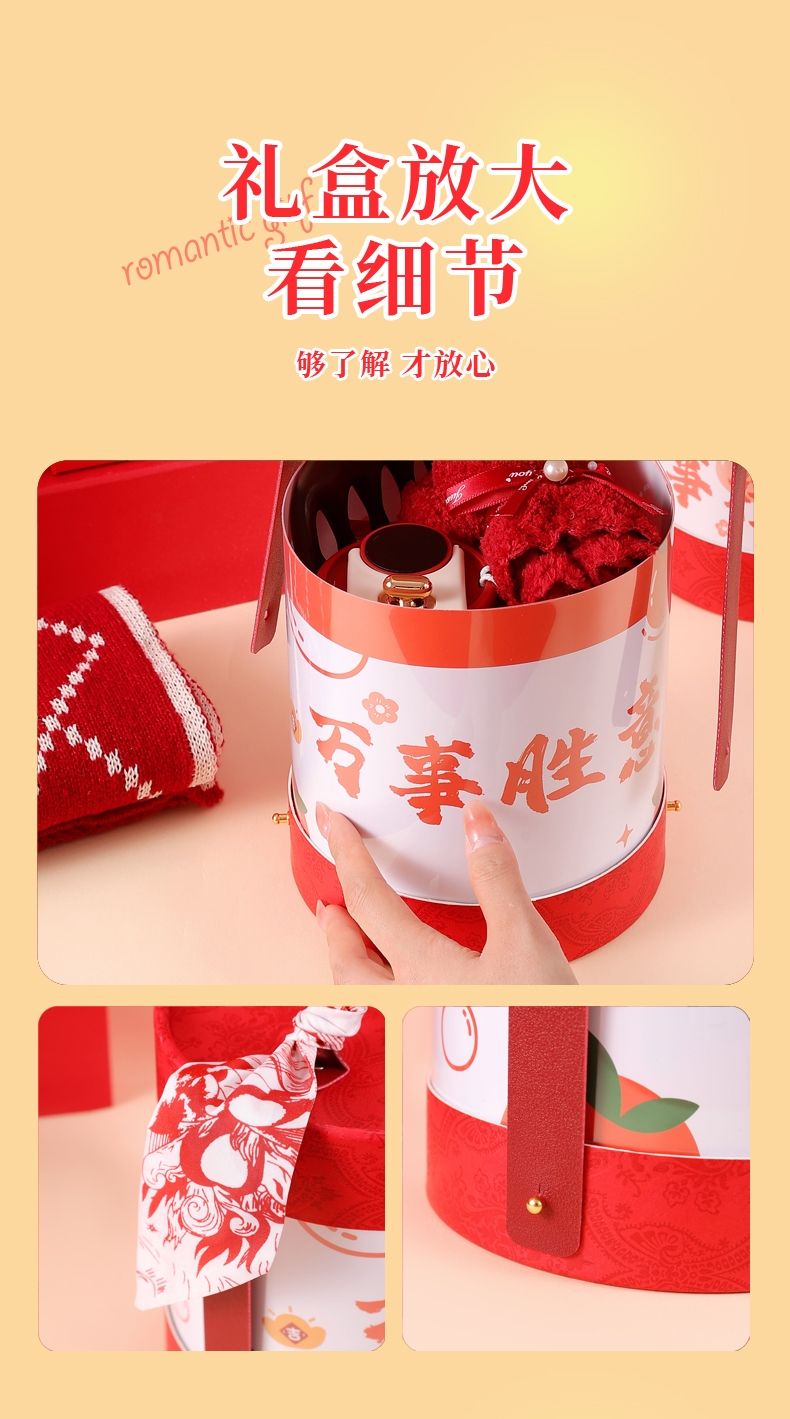 萌呦品 万事胜意红色抱抱桶礼品礼物套装