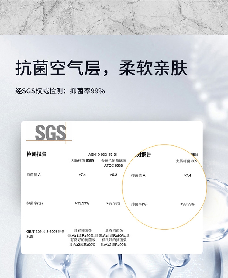 高达99%抑菌,呵护面部皮肤;抗菌空气层,柔软亲肤;波浪设计适应头颈生理曲线