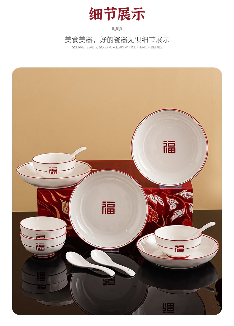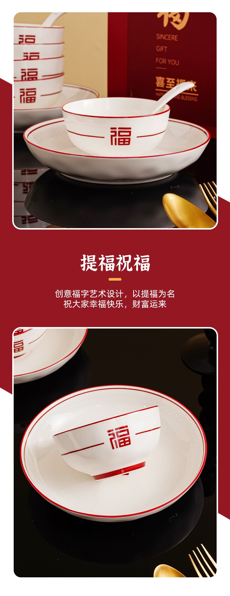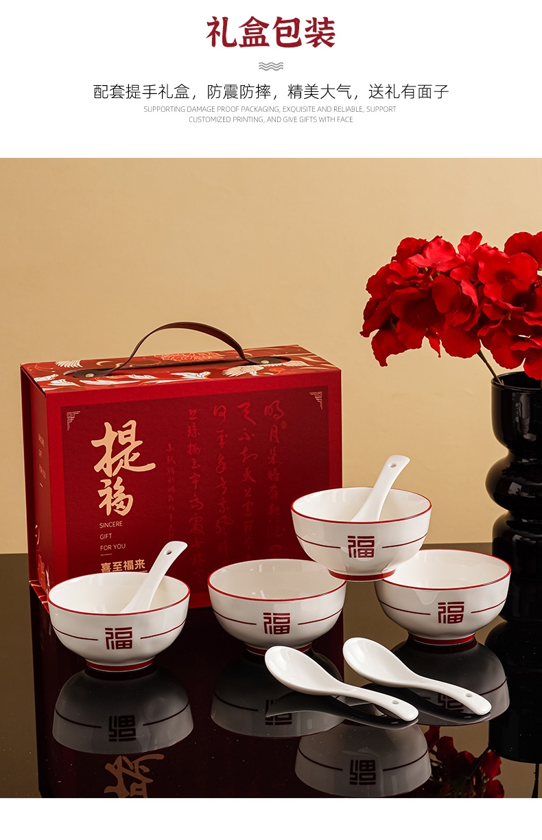 萌呦品 提福喜至福来碗勺筷套装陶瓷餐具