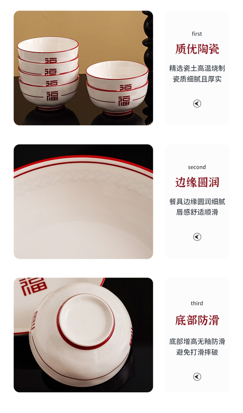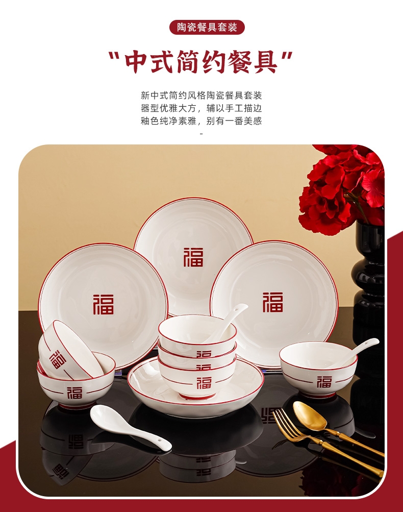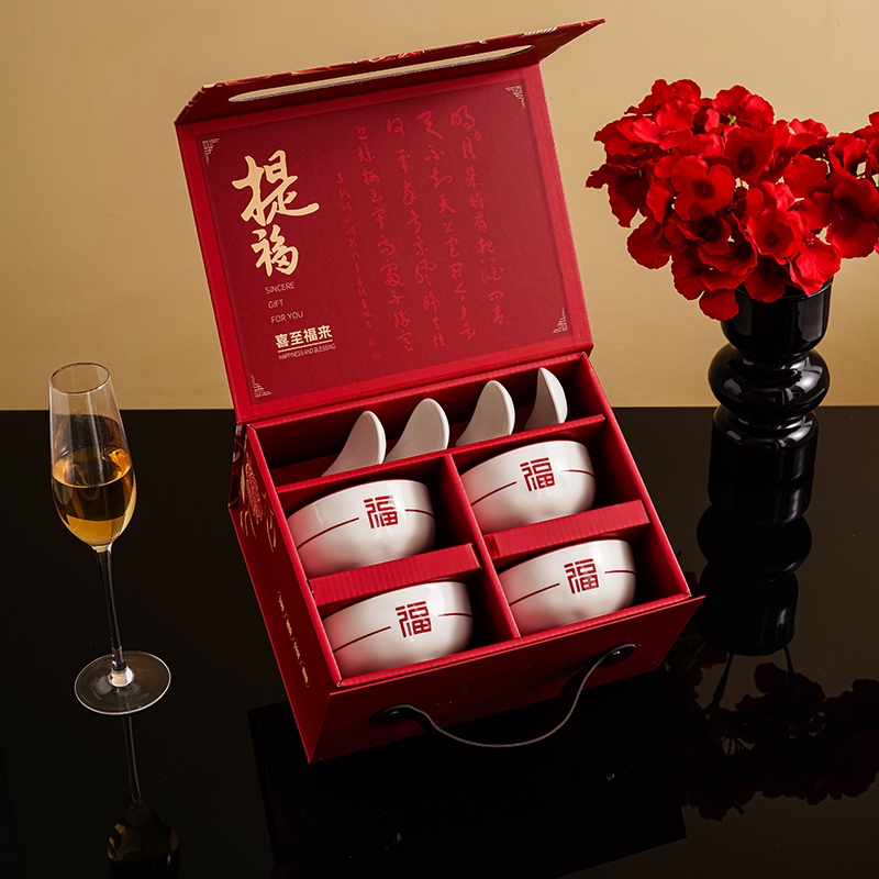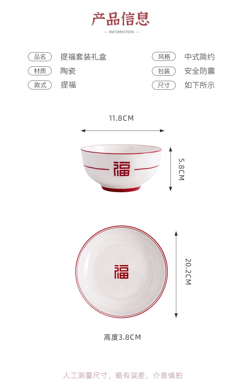 萌呦品 提福喜至福来碗勺筷套装陶瓷餐具
