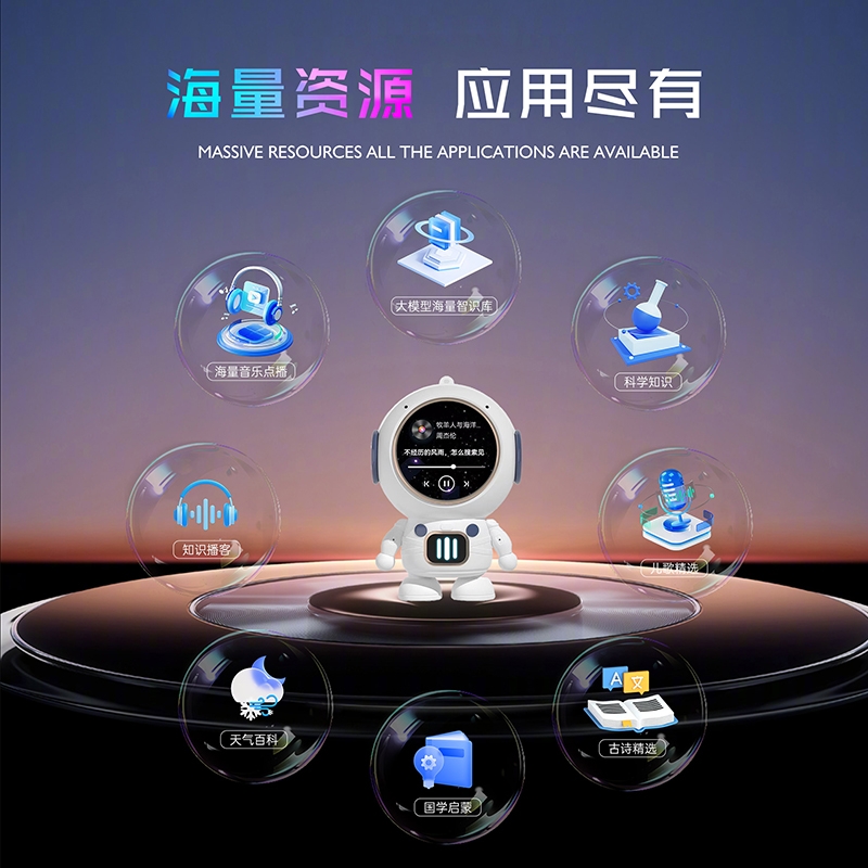 AI语音对话,日常,工作,百科助理;ABS环保材质,磨砂质感,真空镀铬工艺,环保喷漆;玩法多样,趣味DIY