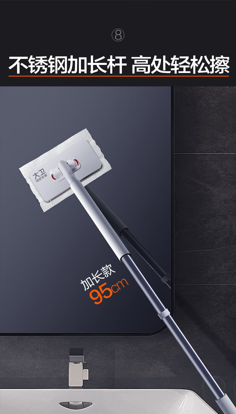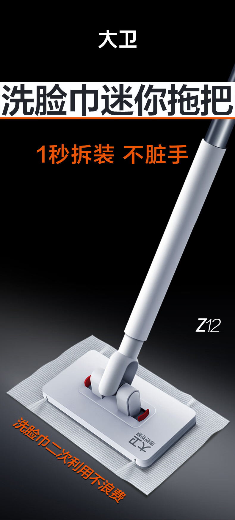 洗脸巾迷你拖把;卡扣式夹布设计;静电除尘拖布