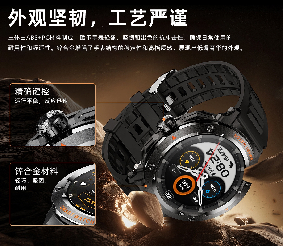 智能手表尺寸(mm):产品材质:ABS+PC、硅胶表带、锌合金