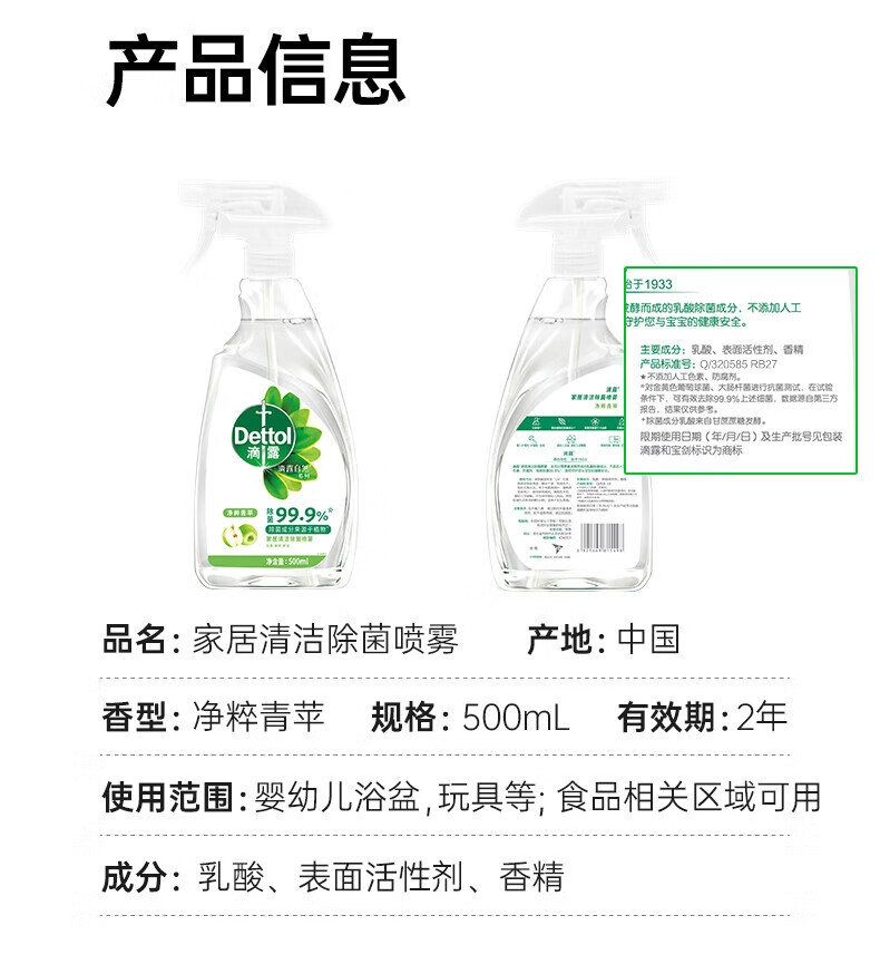 配置清单:滴露家居清洁除菌喷雾净粹青苹500ml *1