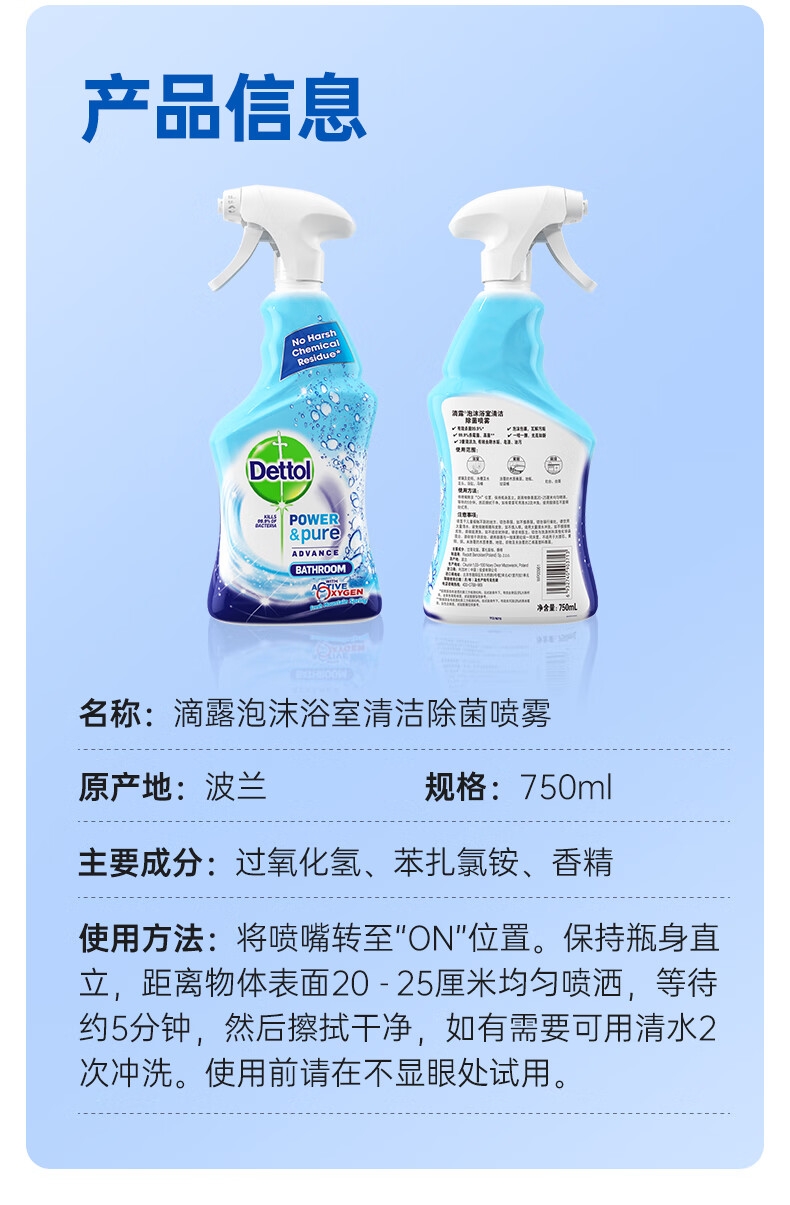 配置清单:滴露泡沫浴室清洁除菌喷雾750ml *1