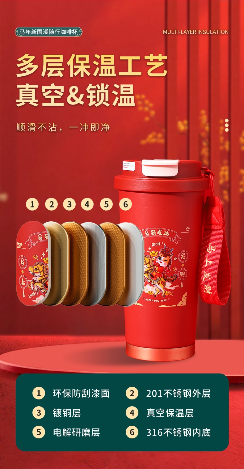 骏天 马年不锈钢保温杯年会礼品佳选M80