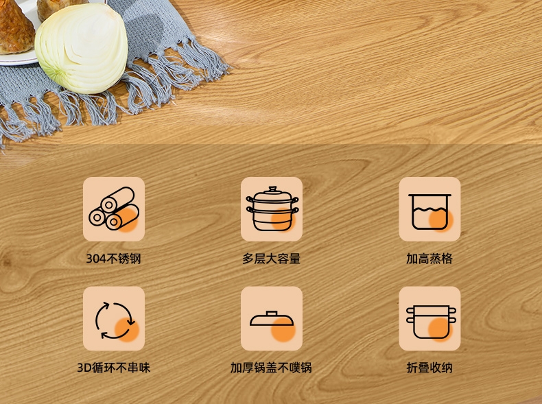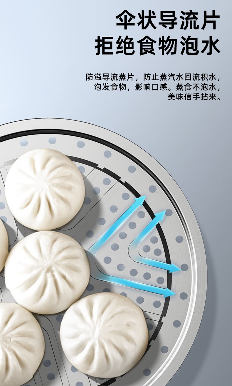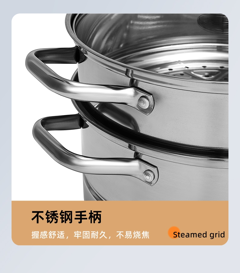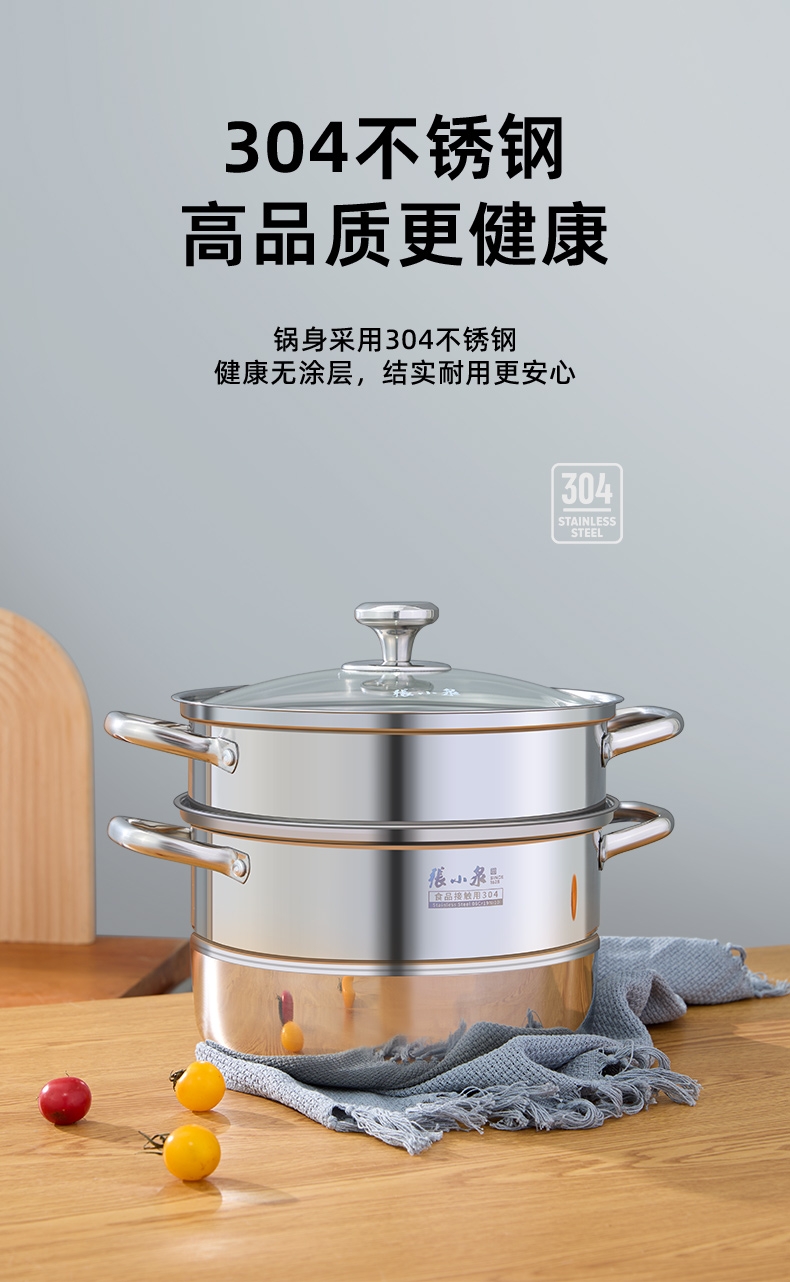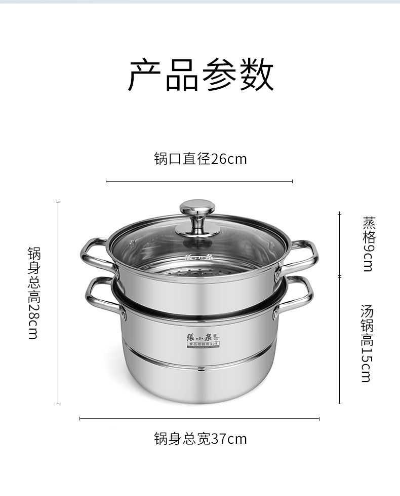 厚重坚实,导热更迅速,节能省时;不挑灶具,可适合不同灶具;双层设计,下煮上蒸,更省时