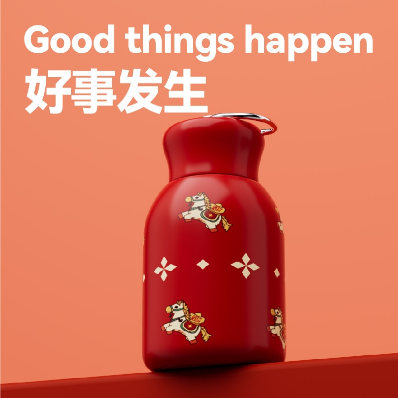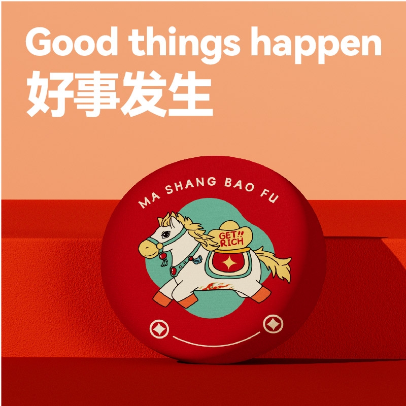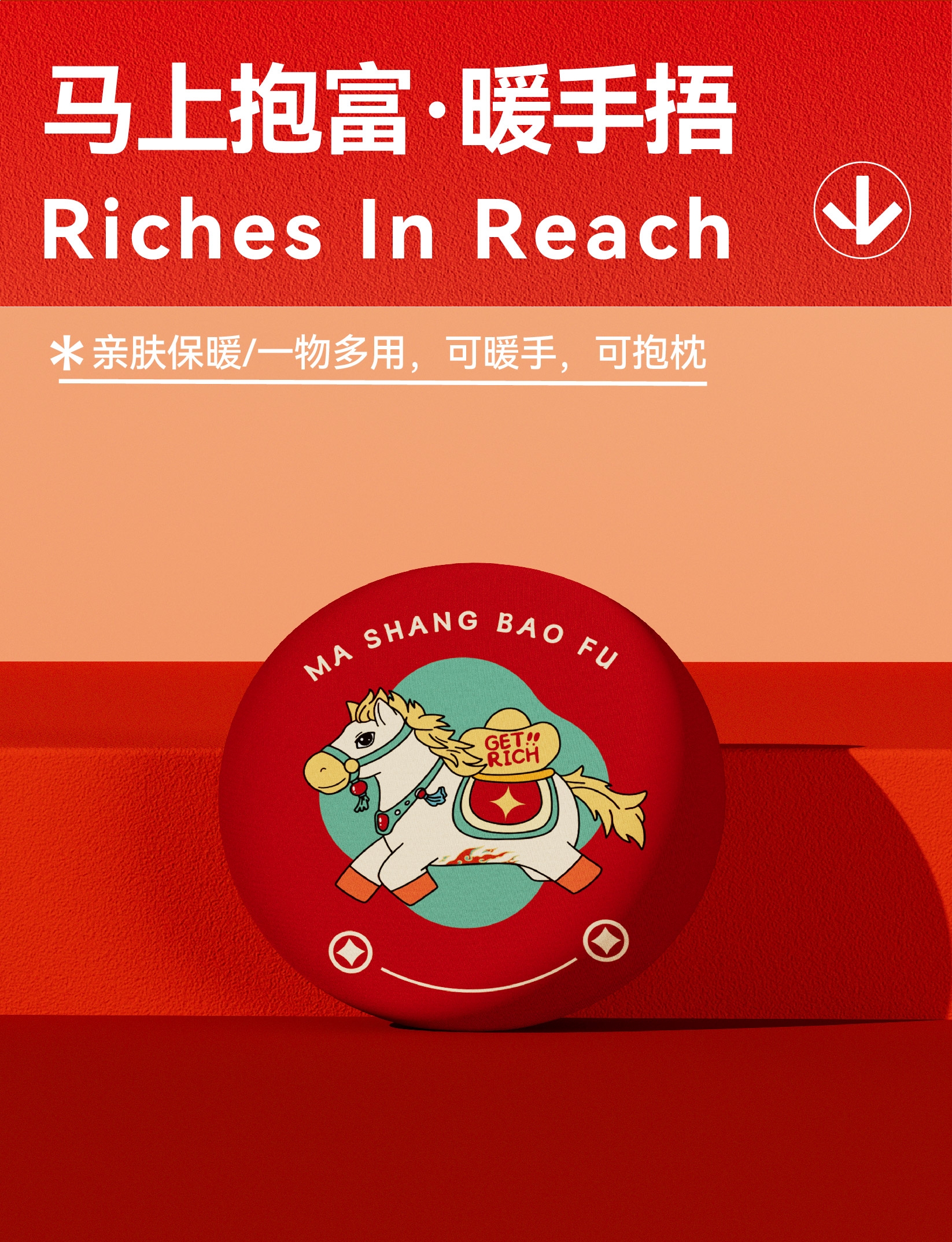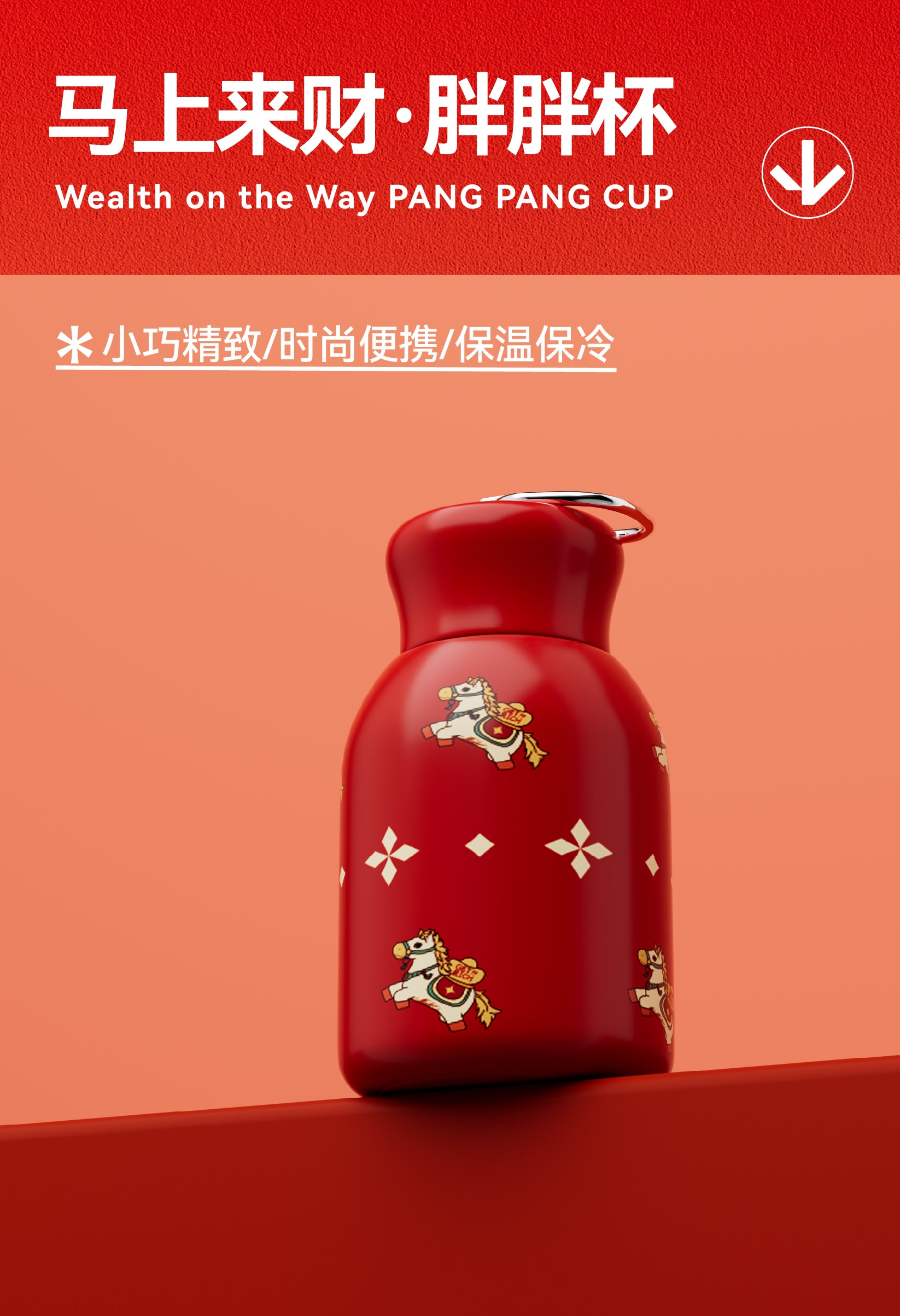 配置清单:提盒x1、马上抱富·暖手捂x1 马上来财·胖胖杯x1 一马当先·鼠标垫x1 对联福字x1、红包x6、贺卡x1