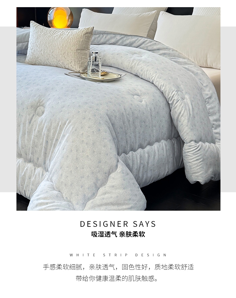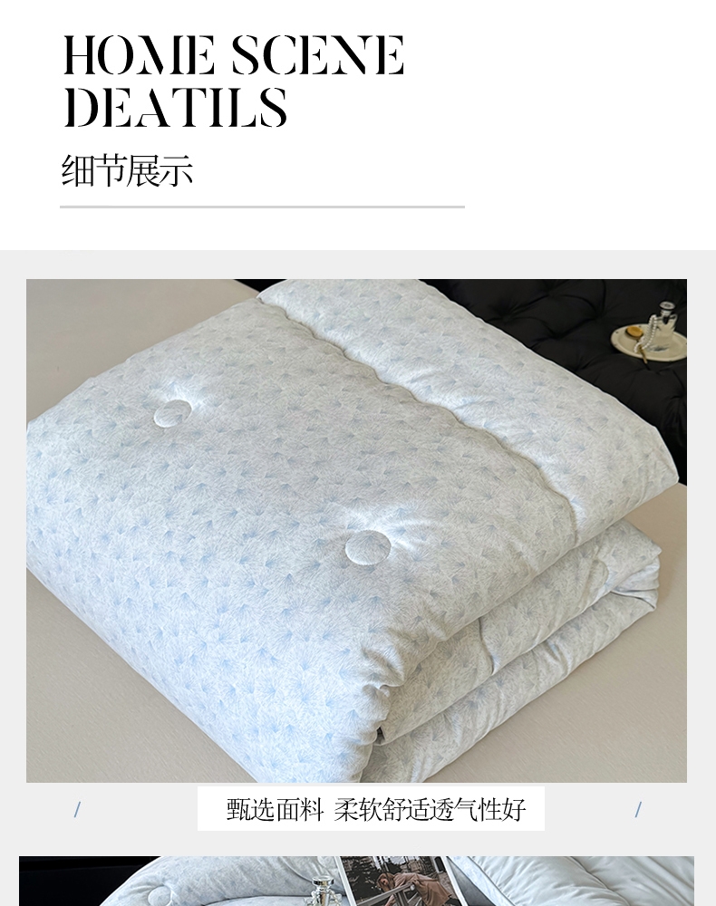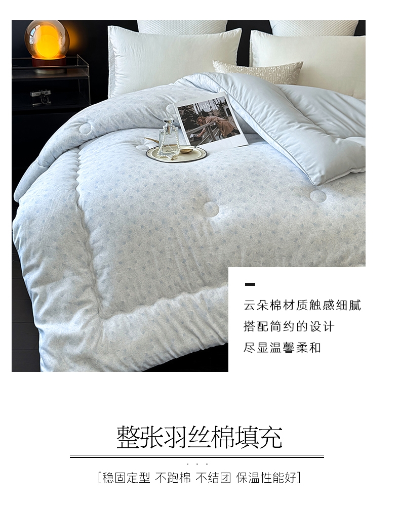 整张羽丝棉填充,稳固定型,不跑棉,不成团;绗缝定型,回弹性好;彩盒、无纺布两种包装,满足集采、代发需求。