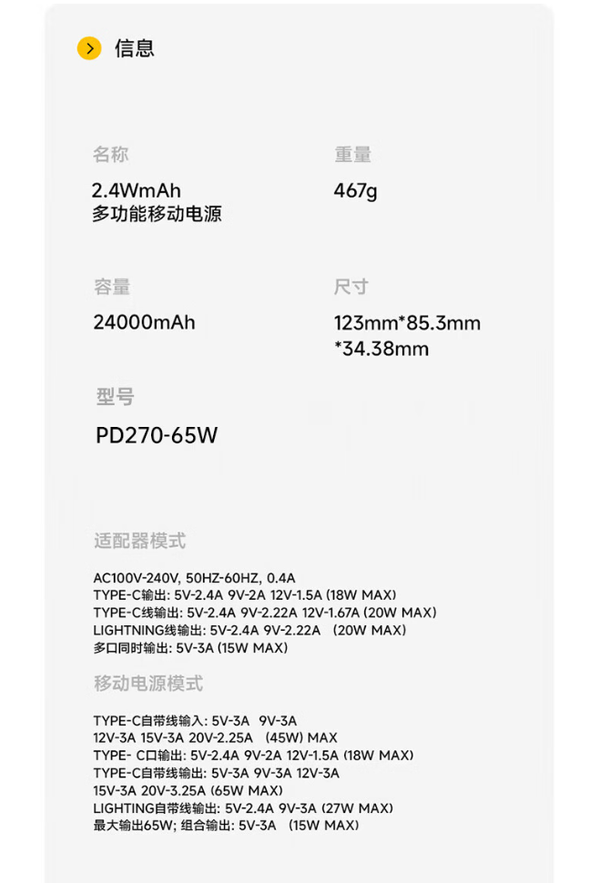 W&P 多合一移动电源PD270
