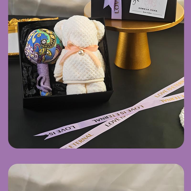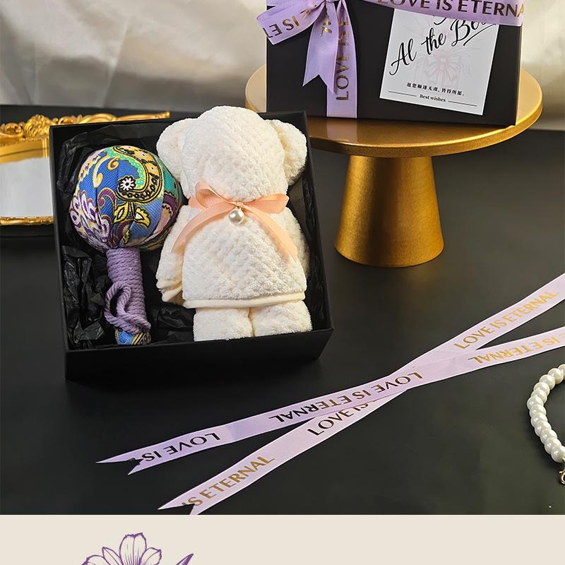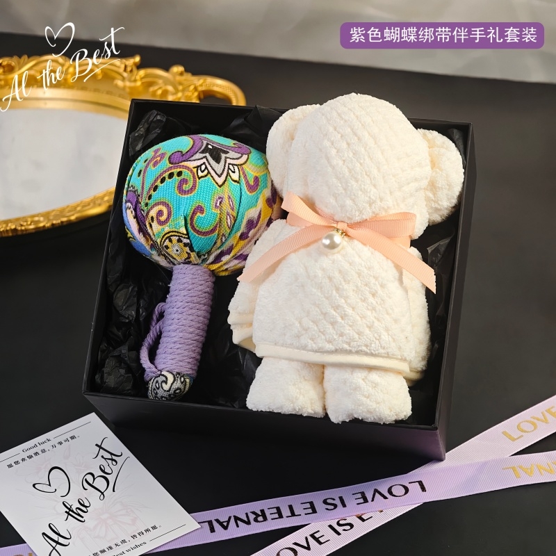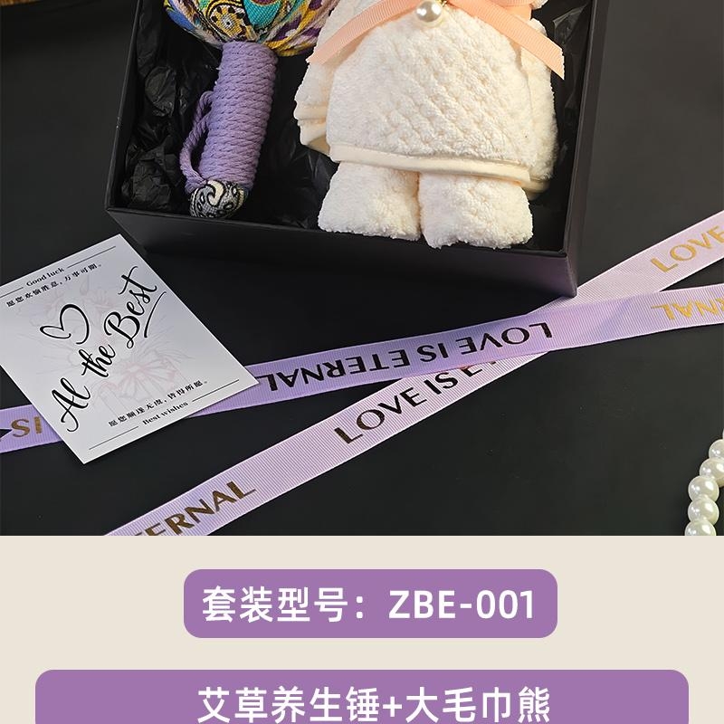 组合:艾草养生锤、大毛巾熊75*34cm、紫色蝴蝶绑带礼盒+贺卡