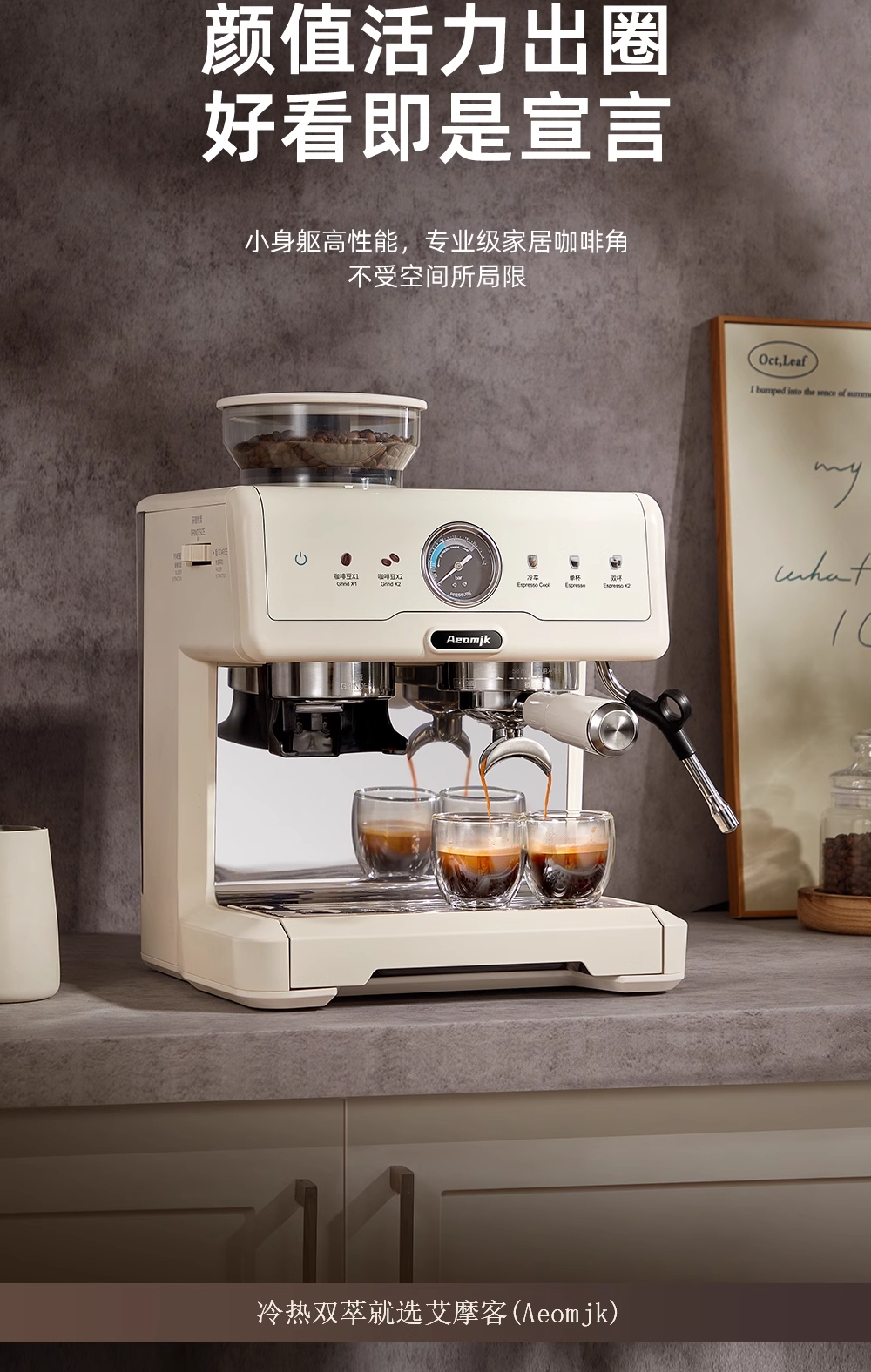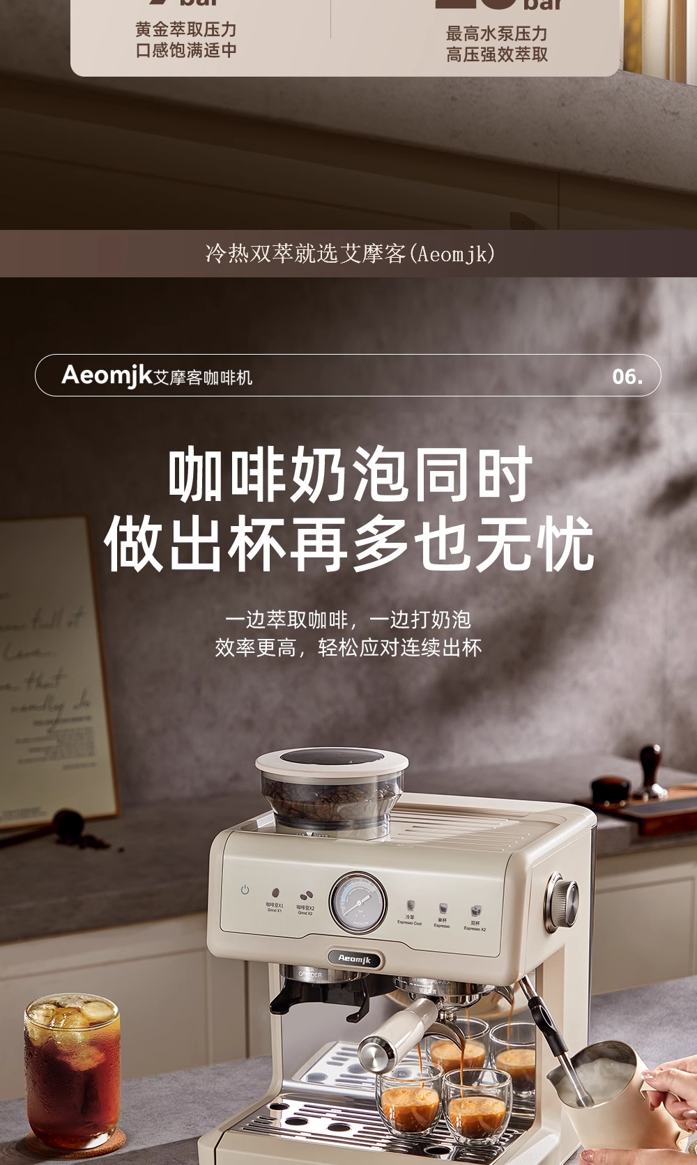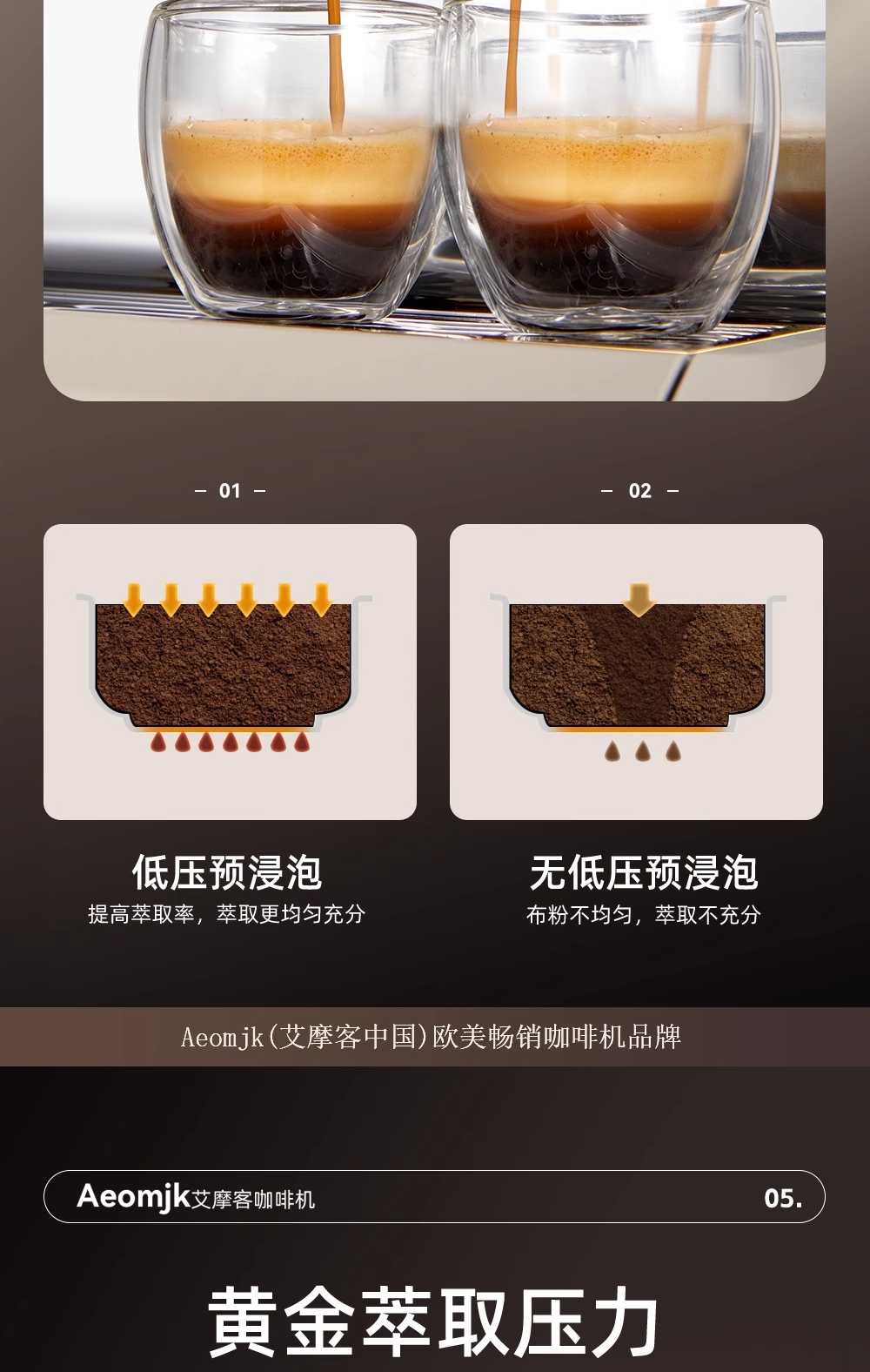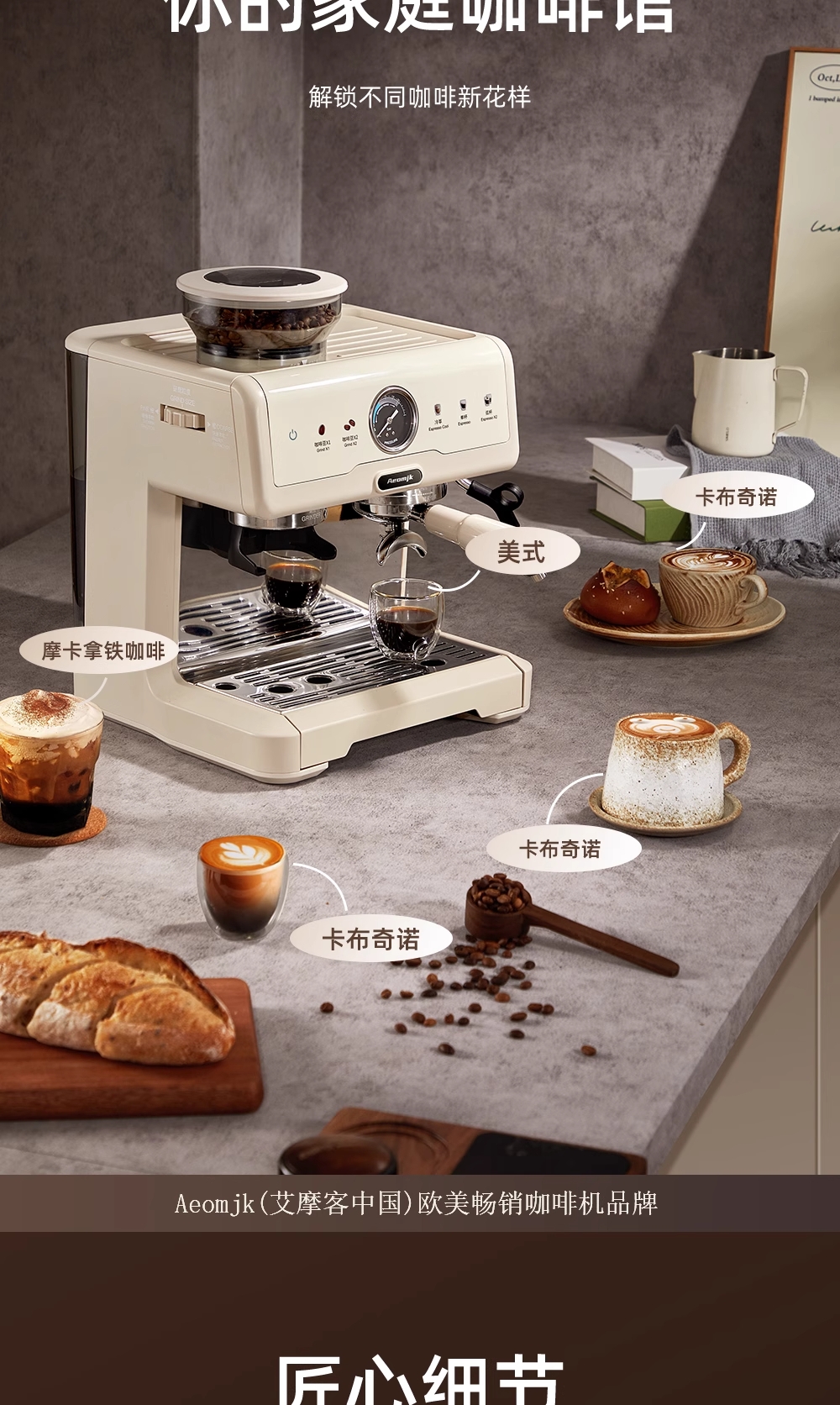 高级磨砂质感,复古压力表设计 ;20档精研磨系统设计,自调研磨粗细度;采用预浸泡功能,萃取更均匀,不宜翻车
