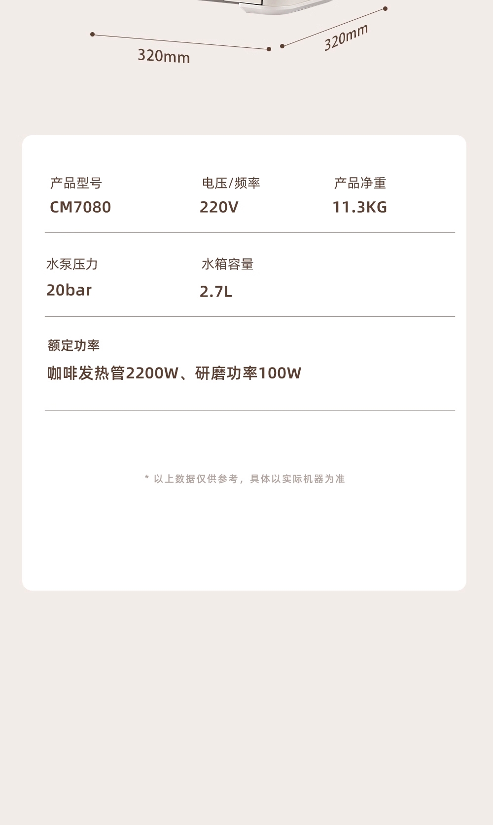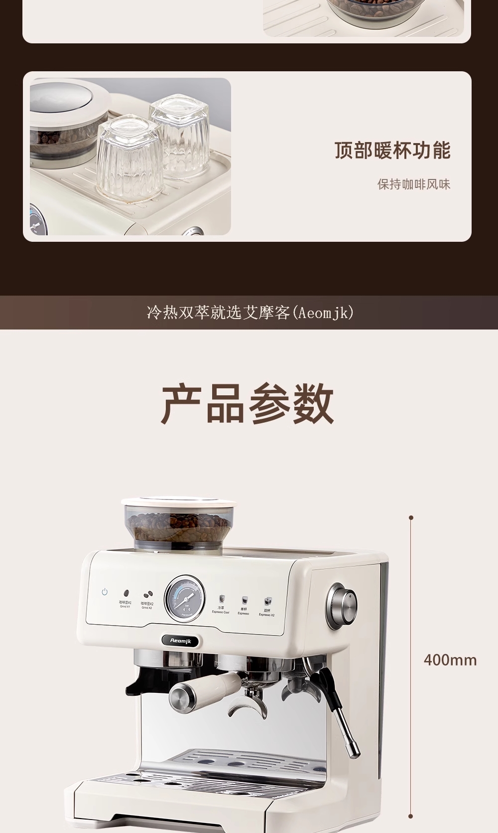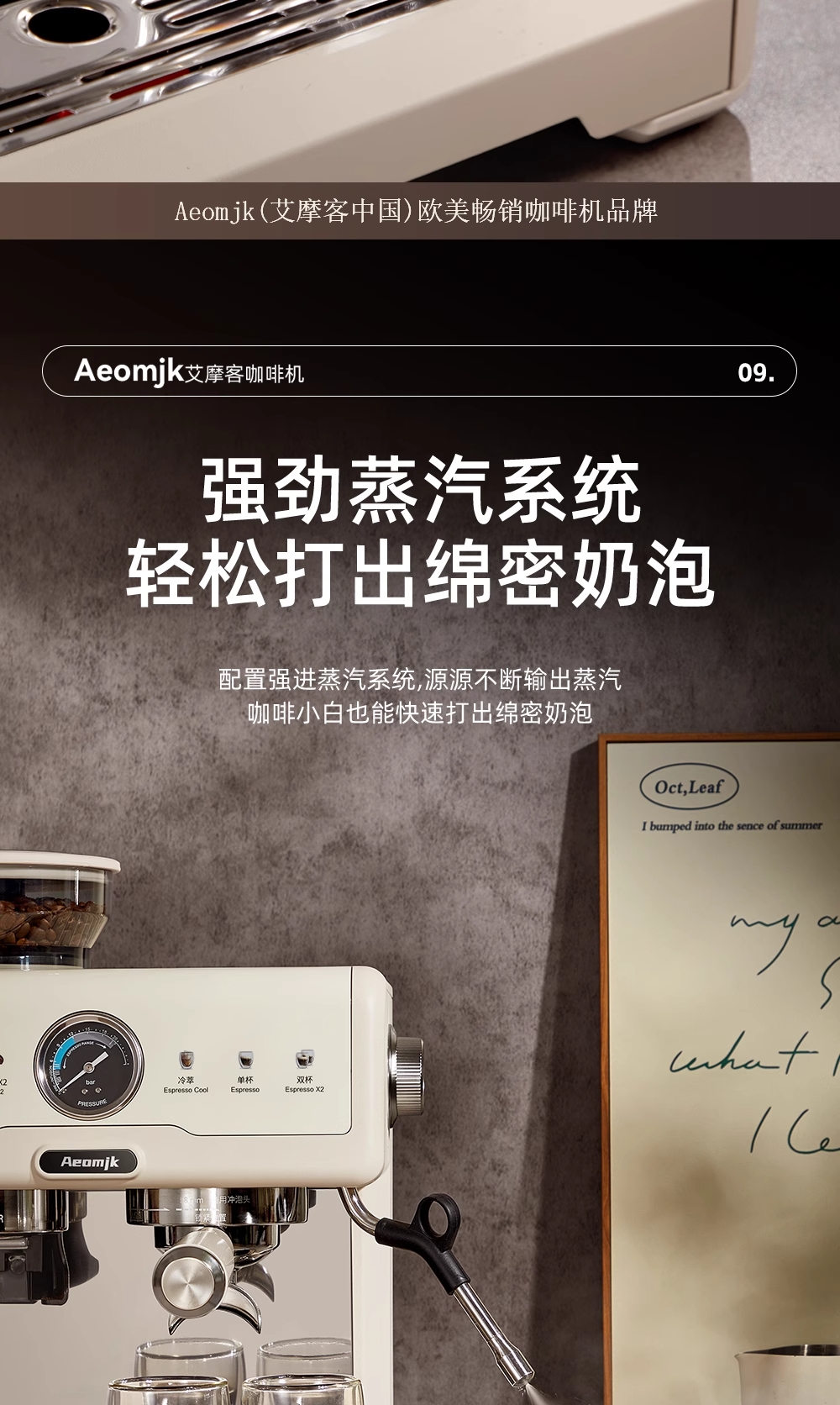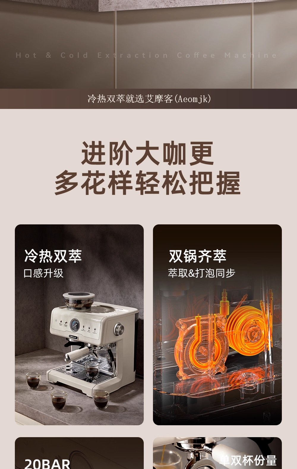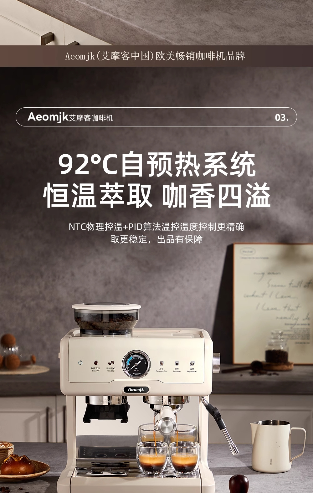 高级磨砂质感,复古压力表设计 ;20档精研磨系统设计,自调研磨粗细度;采用预浸泡功能,萃取更均匀,不宜翻车