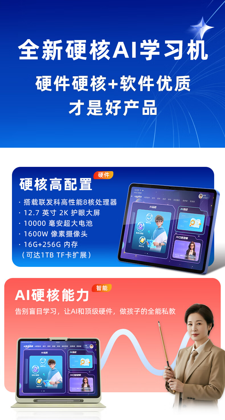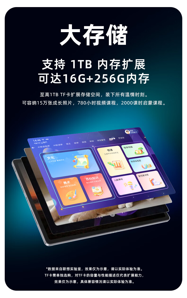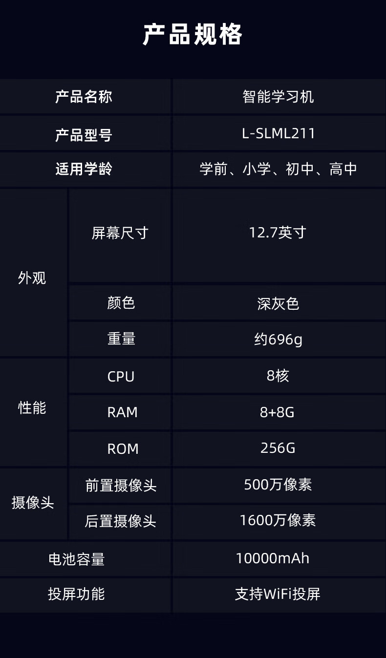 大屏幕12.7英寸;大容量16G+256G;小学初中高中免费教材
