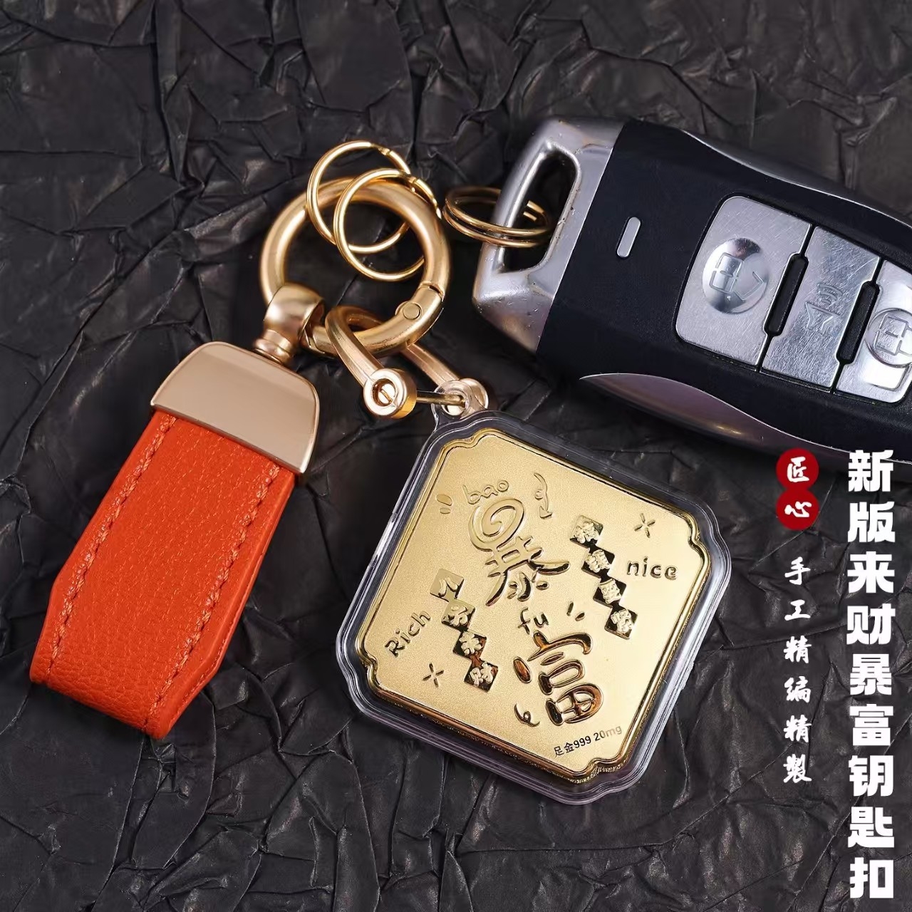 金六福吉祥 足金钥匙扣马上暴富