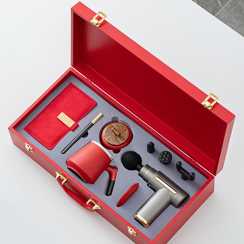 喜庆开门红商务实用性礼品,上班族刚需产品。;专业级筋膜枪,6档变速,4种按摩头,液晶触屏,深度;缓解肌肉酸痛,加大加长大礼盒。豪华大气