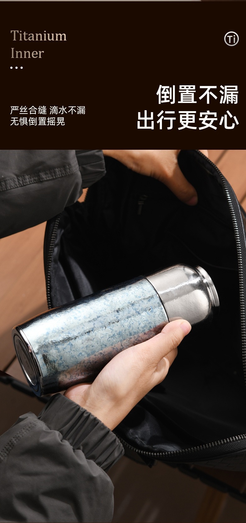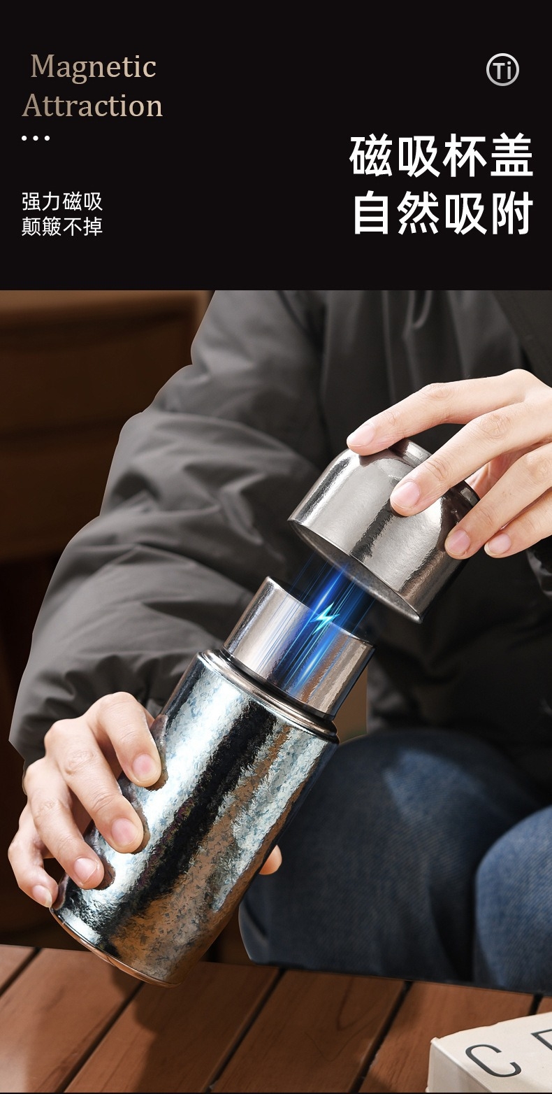 骏天 轻奢纯钛磁吸保温杯双层水杯Ti8032