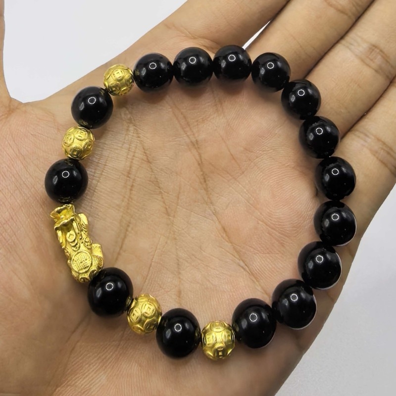 黑玛瑙沉静如夜,银镀金流光溢彩;红玛瑙炽烈似火,貔貅昂首纳祥瑞。;「一摸貔貅,运程旺盛」!传说貔貅护主招财,只进不出;以手串形式常伴腕间,寓意事业通达、财气汇聚,自留馈