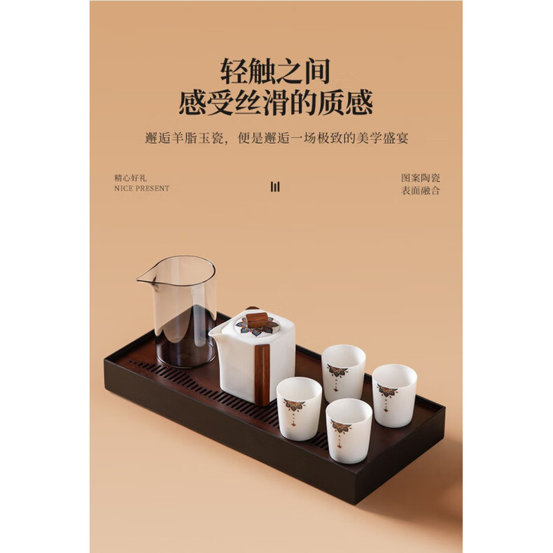 羊脂玉中国白高品质送礼好物;三合一创意设计既是礼盒也是茶盘;当代茶器艺术融合珐琅彩工艺