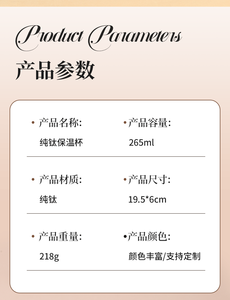 好售后,是一份踏实的守护, 用心滋养每一份期待;礼品的首选,既有档次又实用,送亲友非常合适;钛杯能抑菌保鲜,让您的饮品更健康,高品质理想选择
