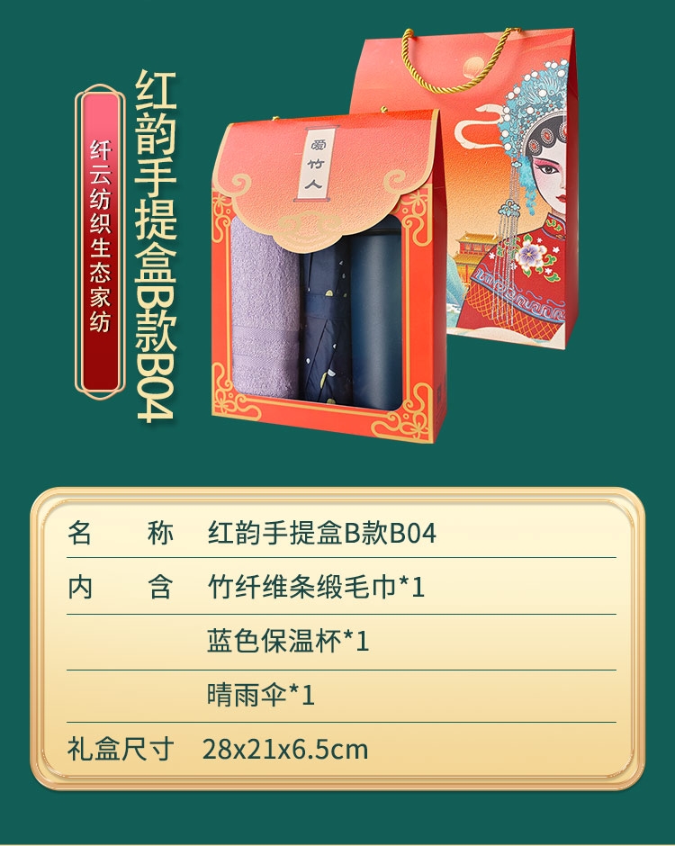 爱竹人 红韵礼盒毛巾保温杯晴雨伞3件套B04