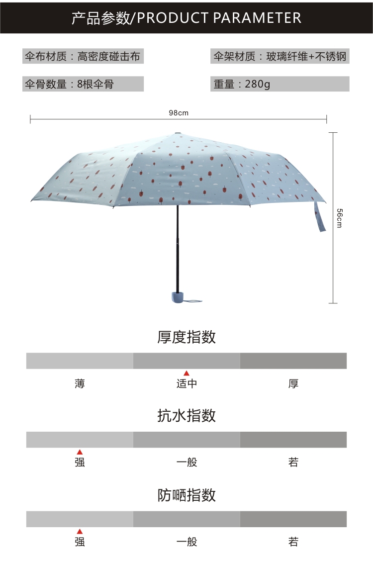 配置清单:竹纤维条缎毛巾*1 蓝色保温杯*1 晴雨伞*1