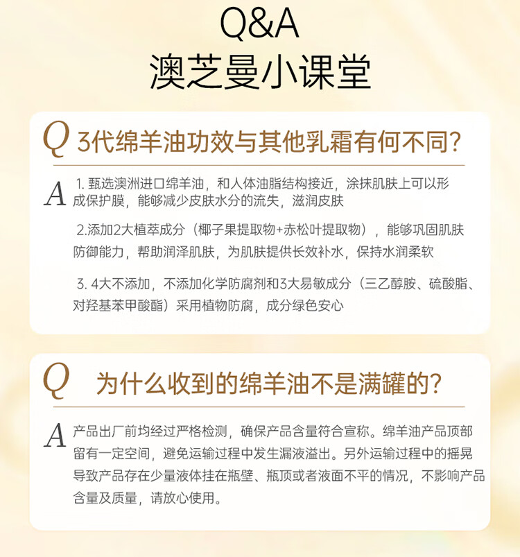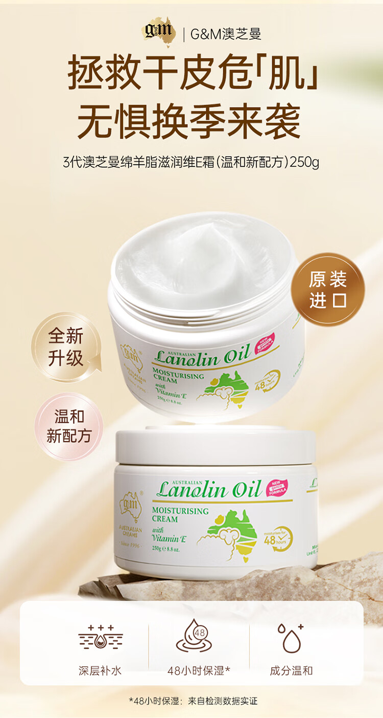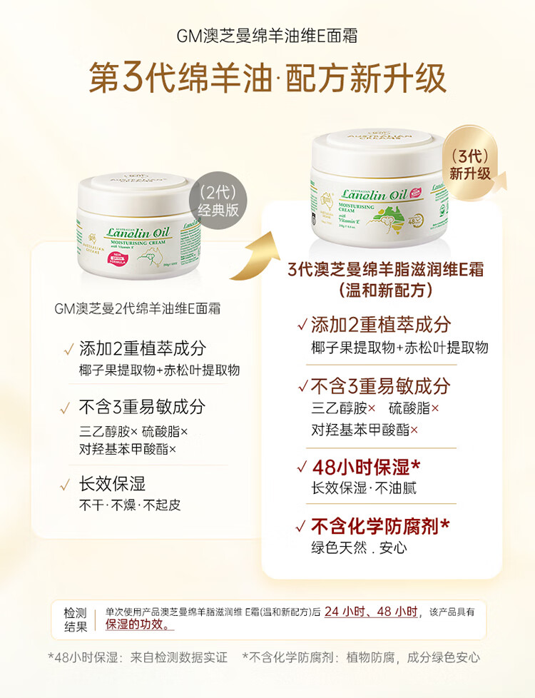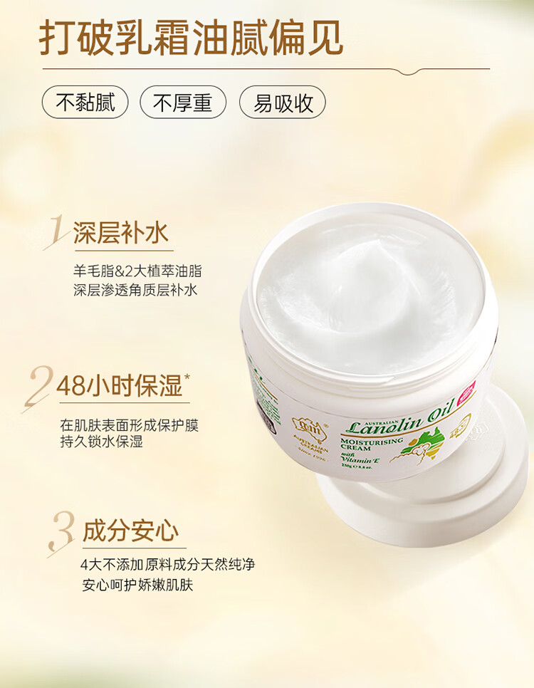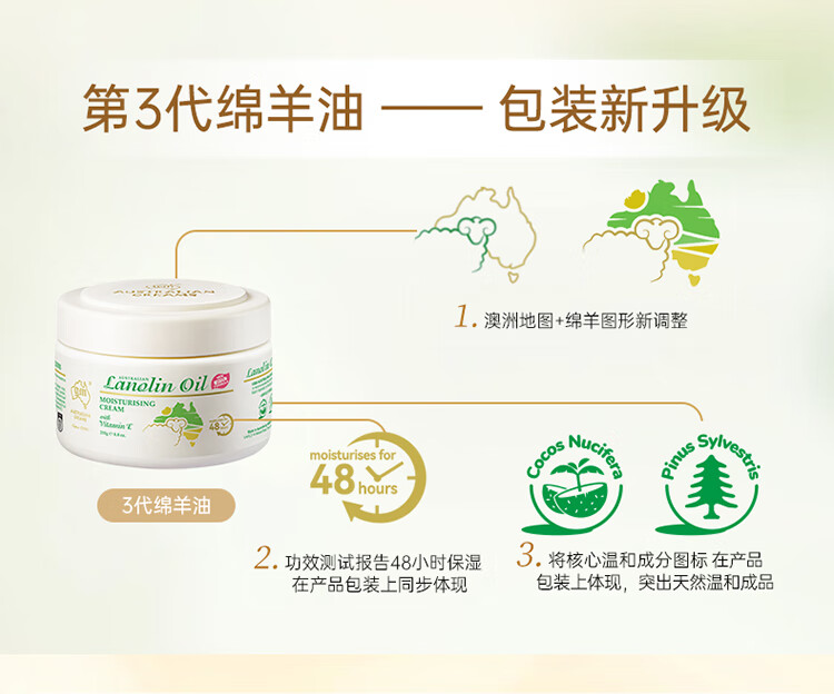 澳洲原装进口;29年资格品牌;绵羊脂保湿滋润