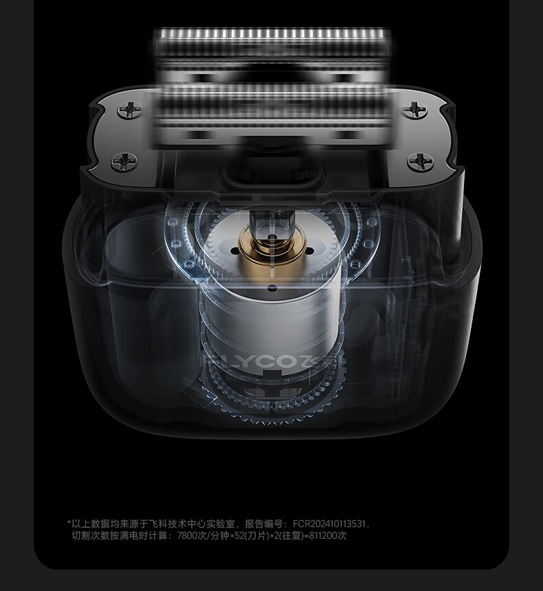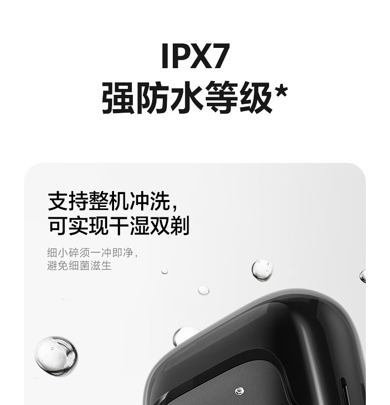 380mm²大面积刀网;811200次/分钟,强劲切割次数;IPX7级全身防水