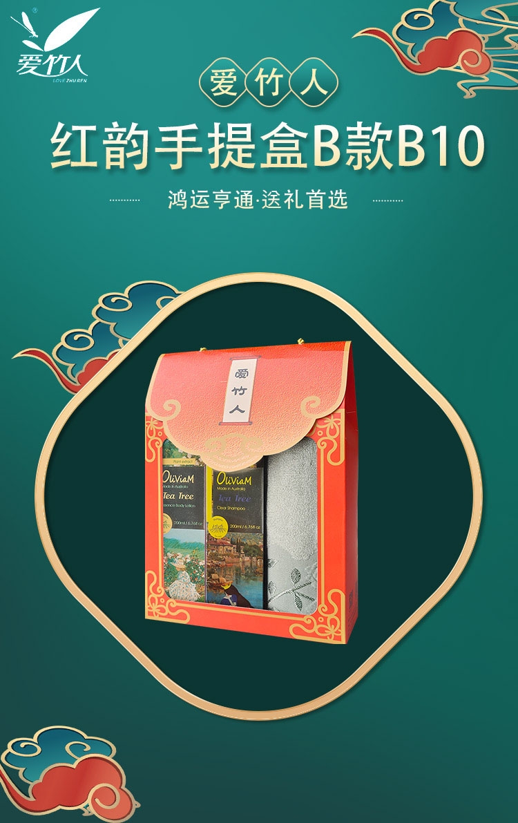 爱竹人 红韵礼盒毛巾身体乳洗发水3件套B10