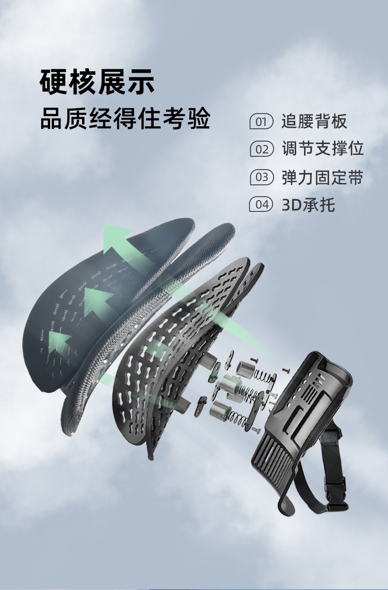 腰靠背部5档调节,不挑身高,高矮胖瘦都好用;双背垫采用加强型松紧带,搭配专用对插卡扣,方便固定;采用环保式设计的双肺叶背托