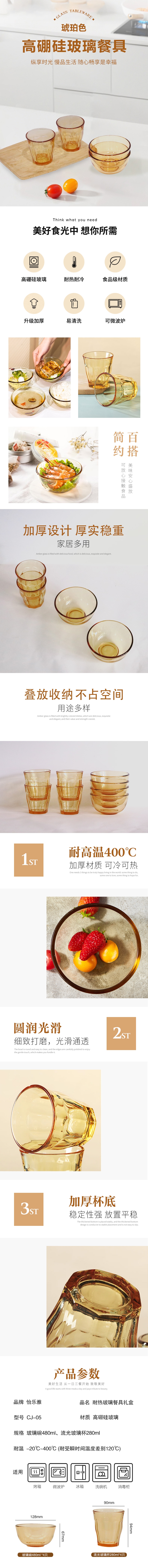 高硼硅耐热玻璃,琥珀色轻奢有型;冰箱,微波炉、烤箱、洗碗机可用;促销、换购,企事业单位福利。家居日用的好选择