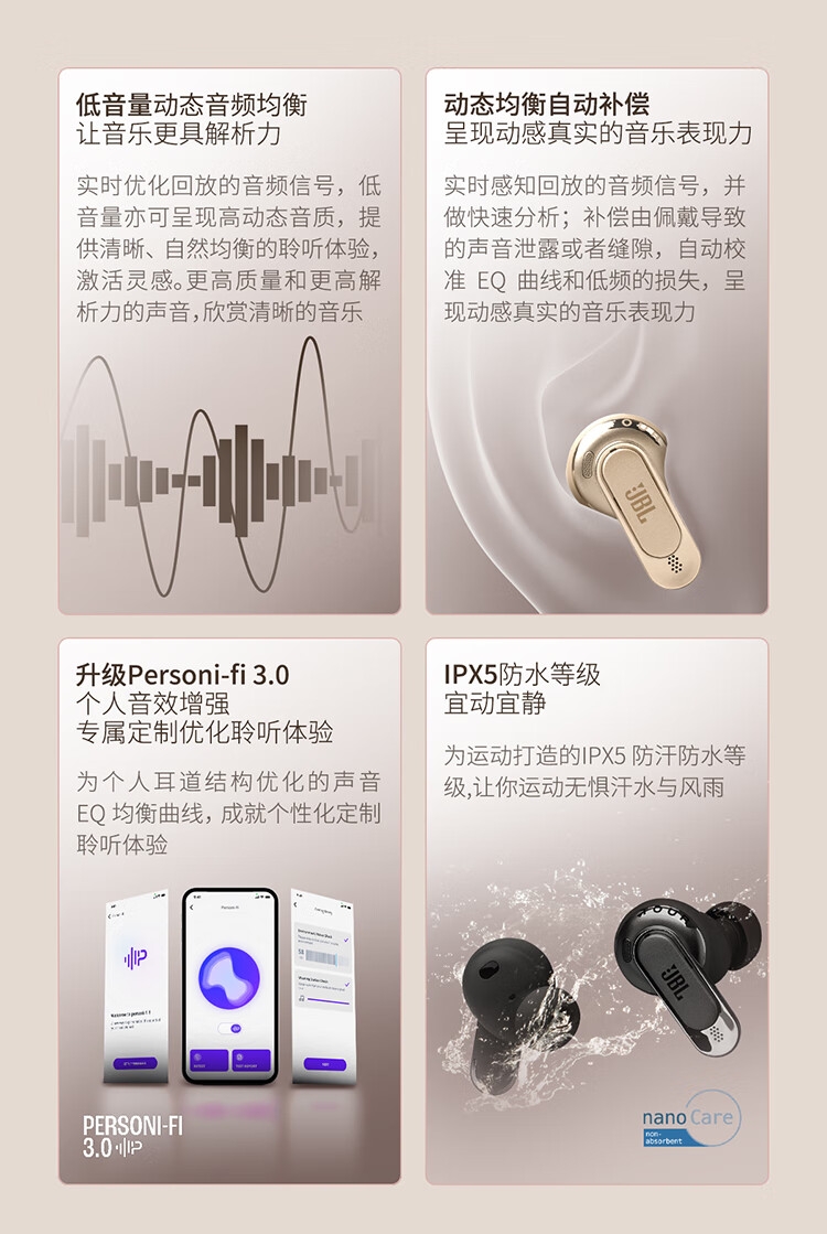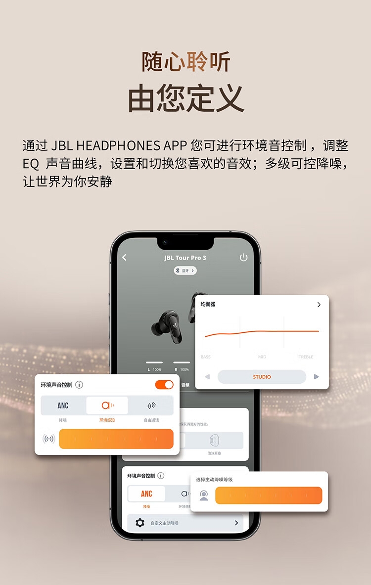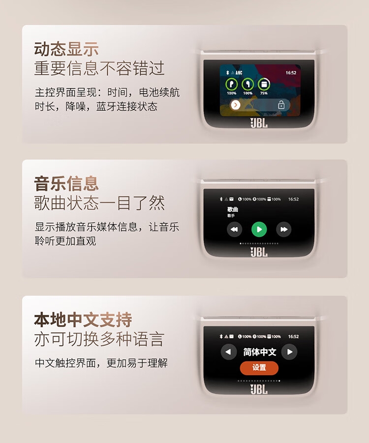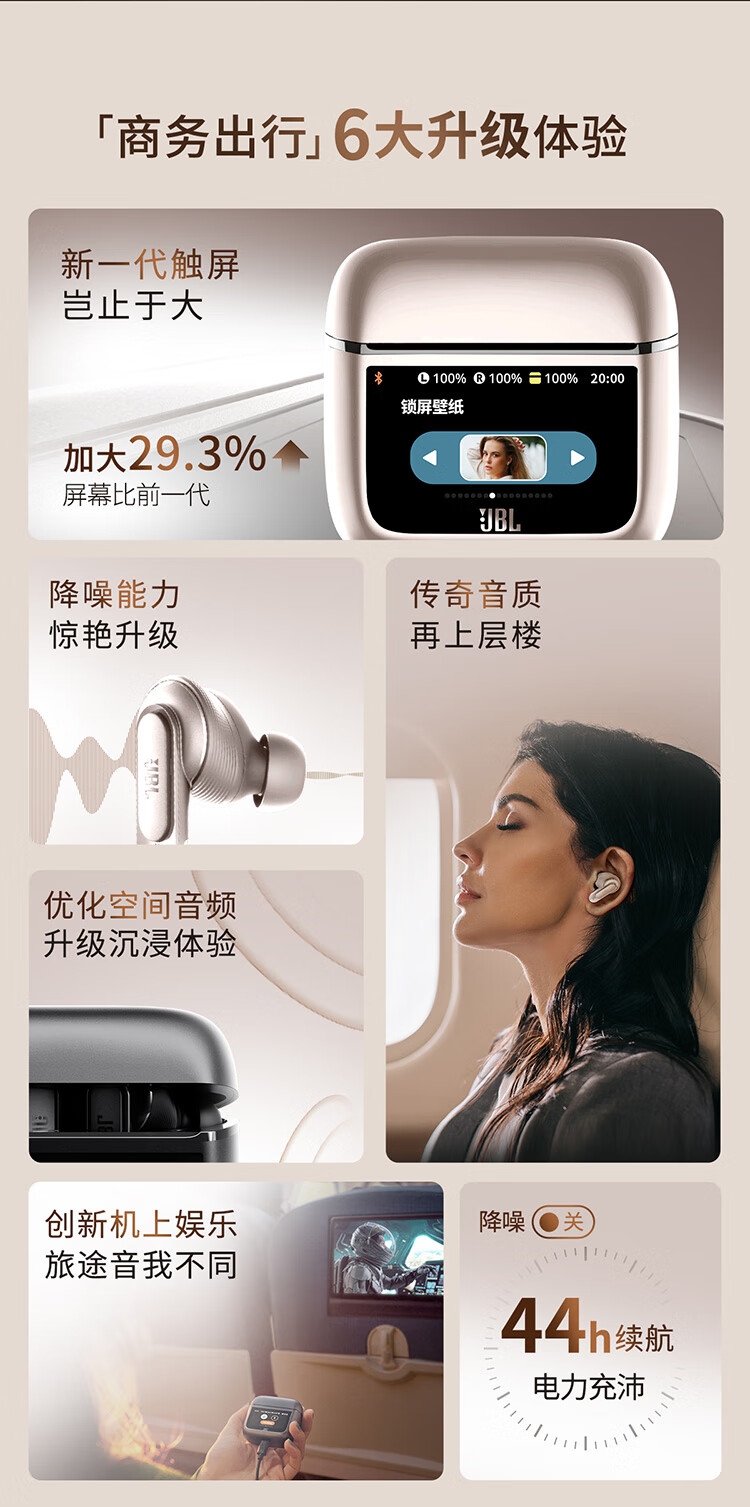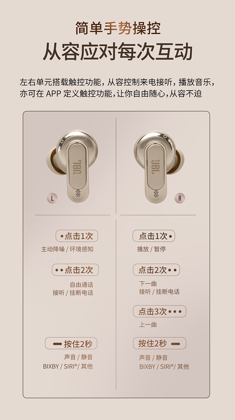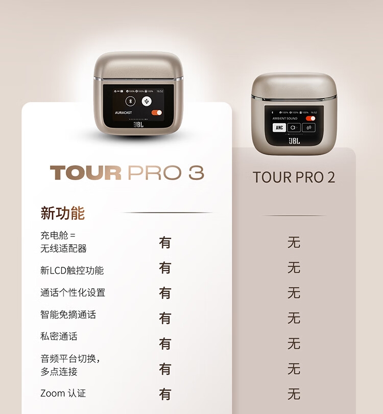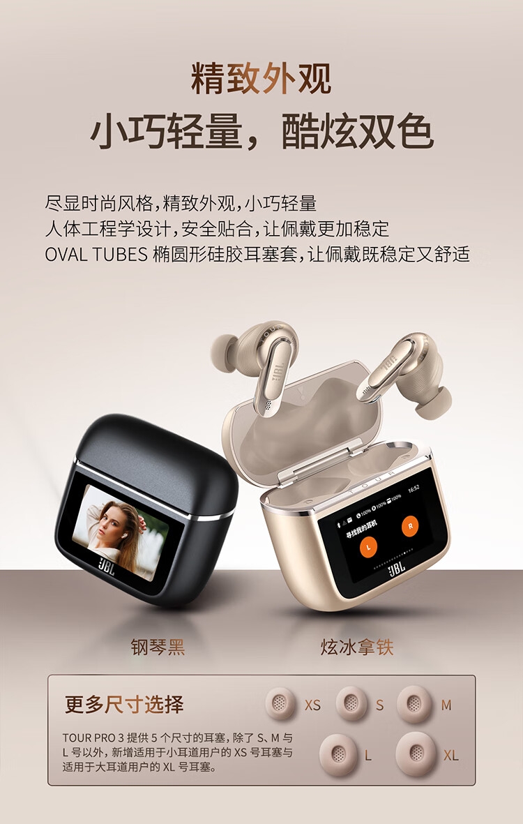 JBL 无线入耳式蓝牙耳机智能触屏TOURPRO3