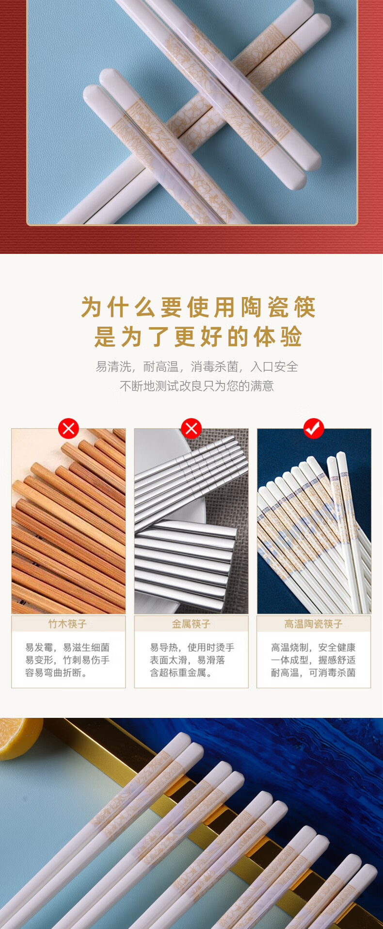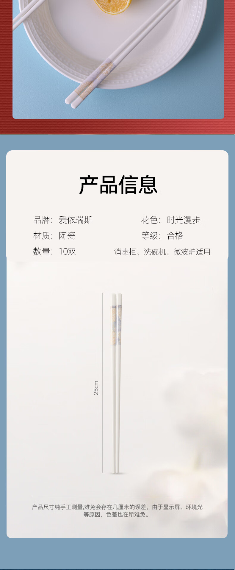 爱依瑞斯 陶瓷筷子10双KZ-10A